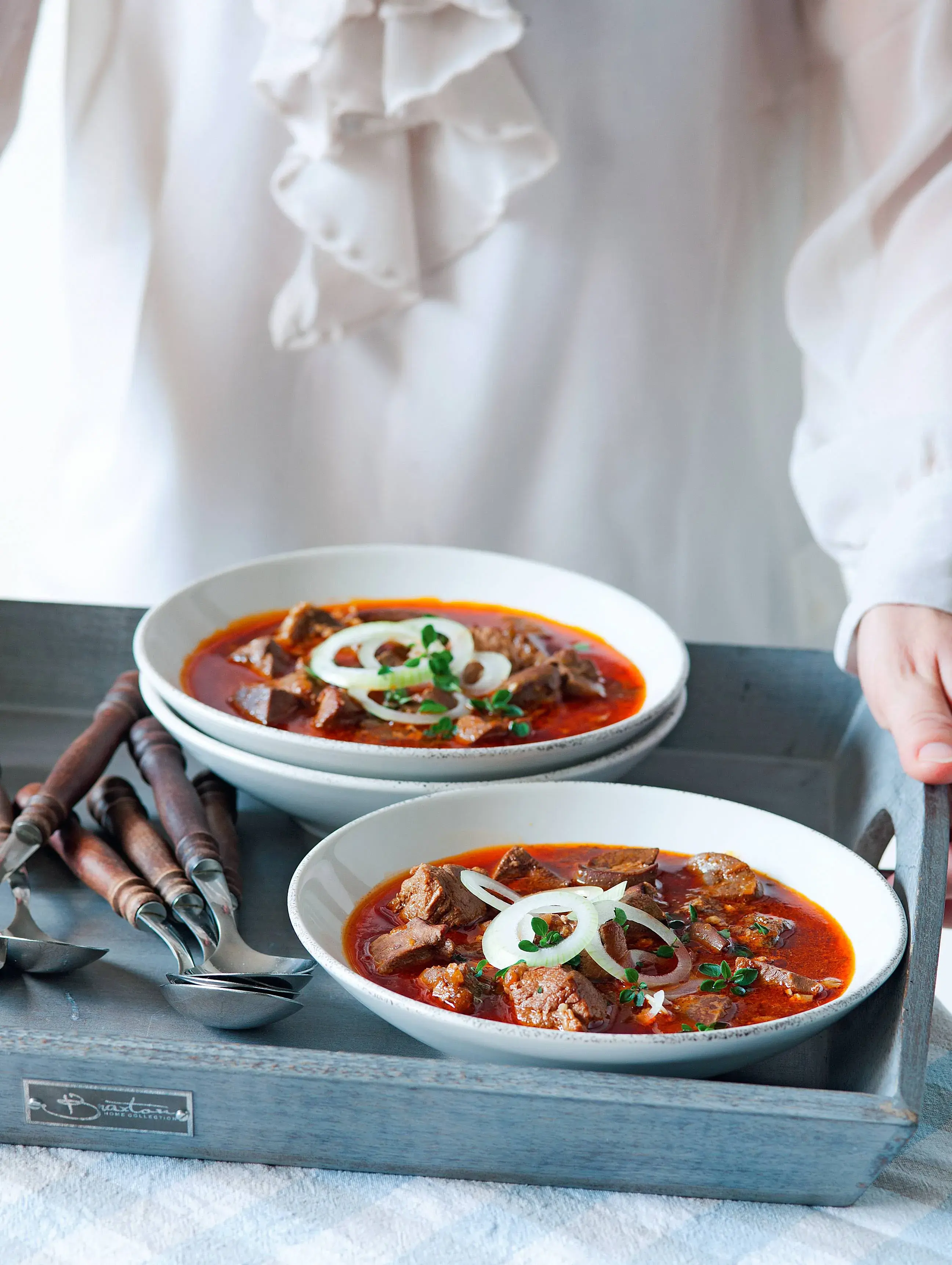 Zabijačkový guláš dušený v troubě je tradiční zabijačkové jídlo, do kterého se zužitkují především vnitřnosti. Ale také tučnější část plece. Bránice chrání maso před vysušením a během pečení se postupně v guláši rozplyne a dodá mu ještě lepší chuť a tuk. Zabijačkový guláš je nejlepší s plátkem čerstvého chleba.