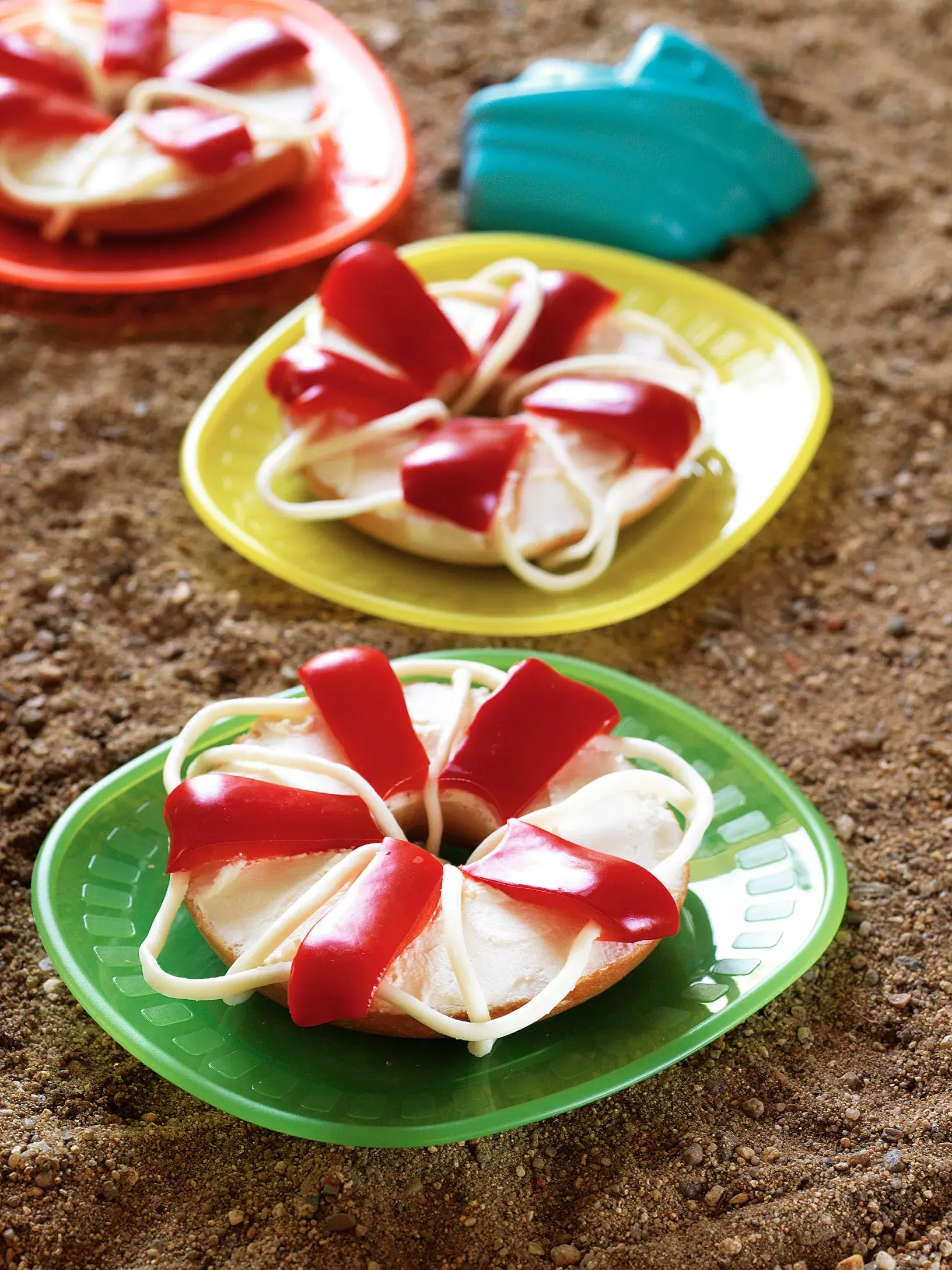 Bagel, slané kulaté pečivo s otvorem uprostřed, přímo svádí k tomu, aby posloužilo malým námořníkům jako lahodný záchranný kruh.