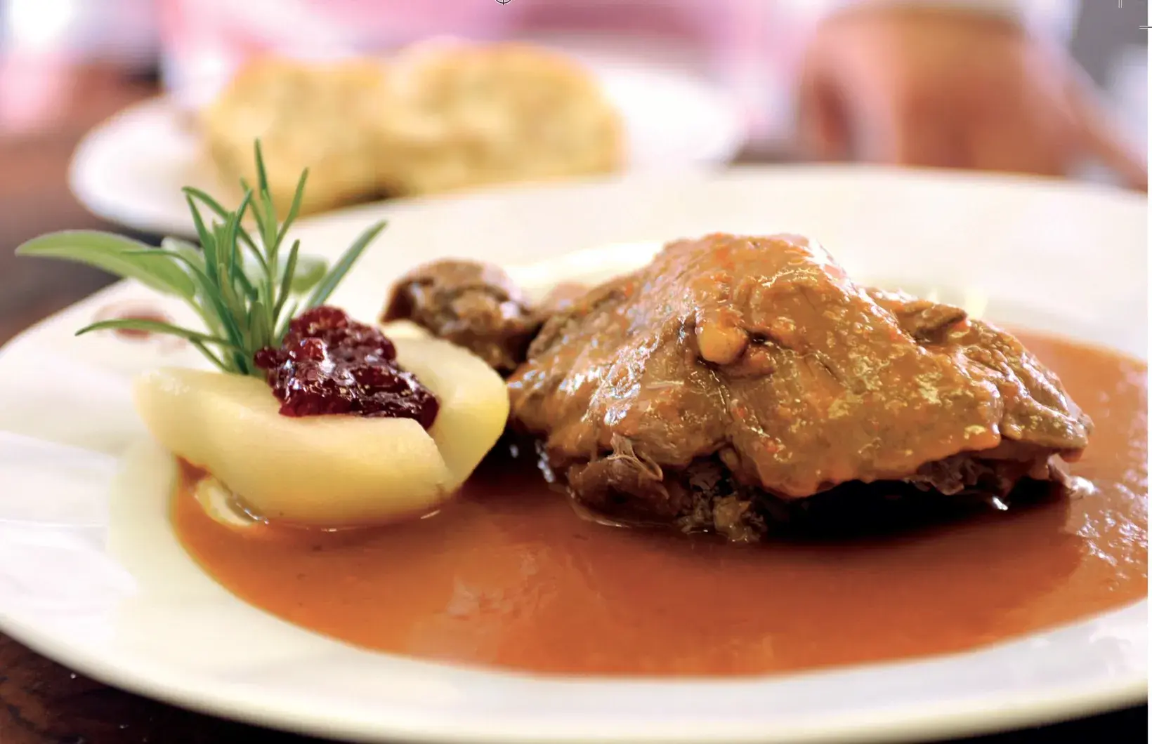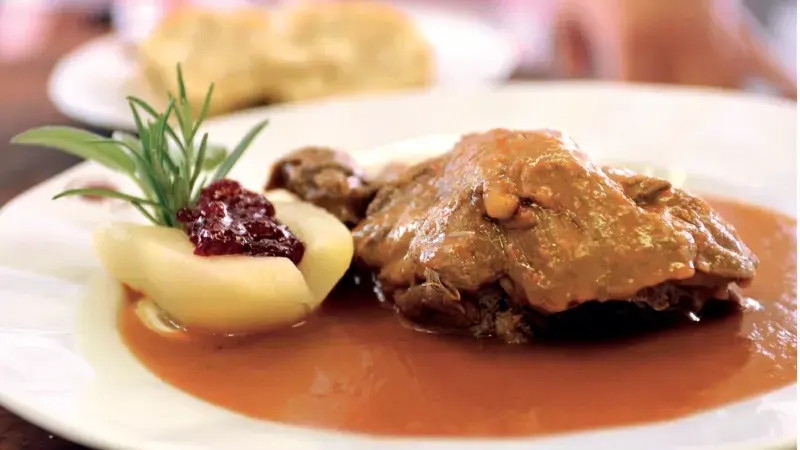 Nejtypičtější jídlo restaurace U Lípy - podle Maurerova výběru Grand Restaurant nejlepší české restaurace roku 2008. Beze změny a z domácího šípkového protlaku ji tam vaří už dvacet let.