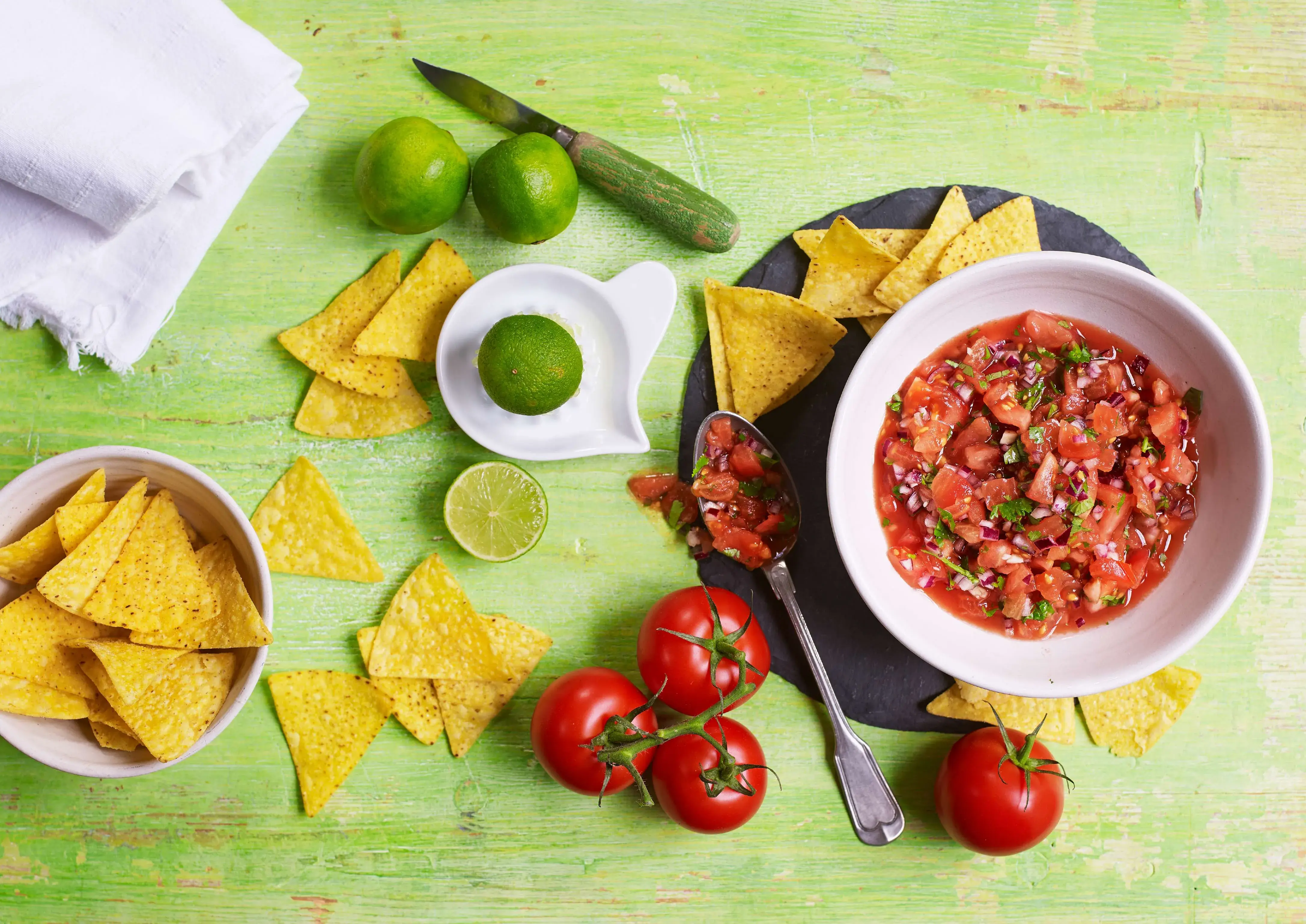 Tuto chutnou zdravou salsu připravíte za pouhých 5 minut z rajčat, cibule, česneku, limety, koriandru a bílého vinného octa. Recept na rychlou rajčatovou salsu se vám bude hodit vždy, když budete čekat hosty. Podávejte s křupavými tortillovými lupínky nachos a nechte všechny, ať si pochutnají.