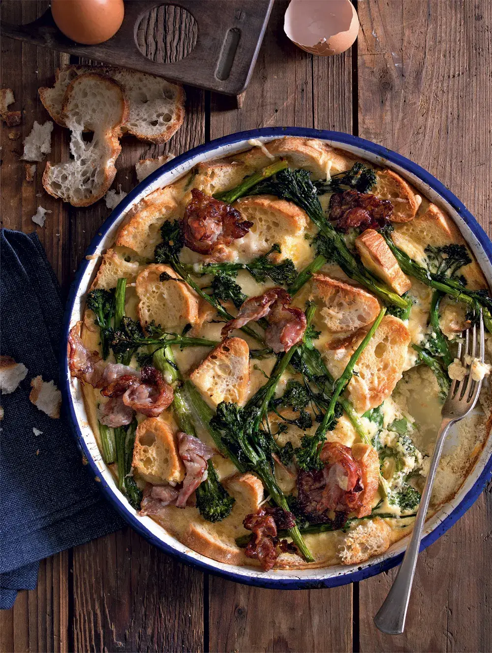 Když vám zbyde bílé pečivo, je žemlovka na slano s brokolicí a slaninou nejlepší volba.