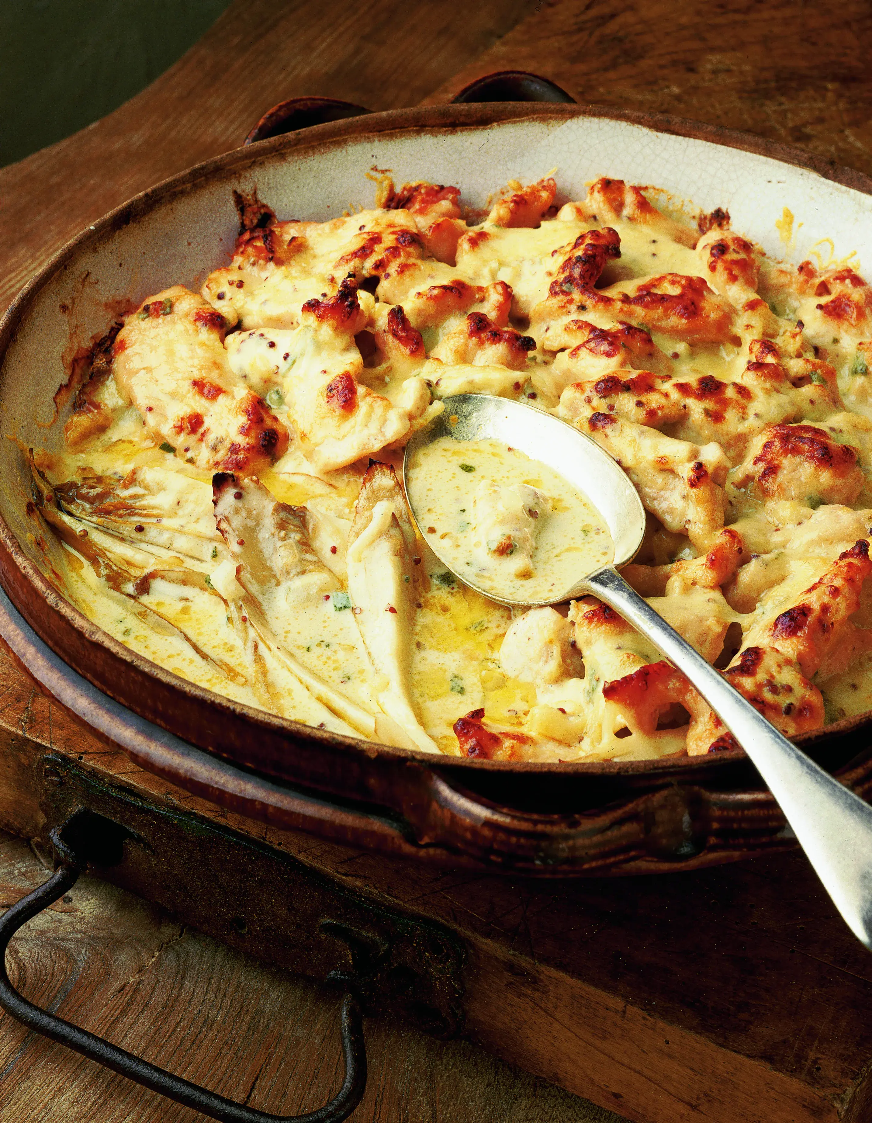 Dva druhy hořčice dodávají krémové omáčce šmrnc. Jídlo podávejte s rýží nebo s bramborovou kaší.