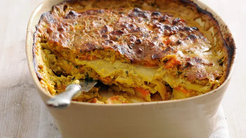 Dijonská hořčice a kombinace bylin a ochucovadel dají zapečeným bramborám skvělou chuť. Na salám nebo slaninu, které si do francouzských brambor obvykle dáváte, si ani nevzpomenete.