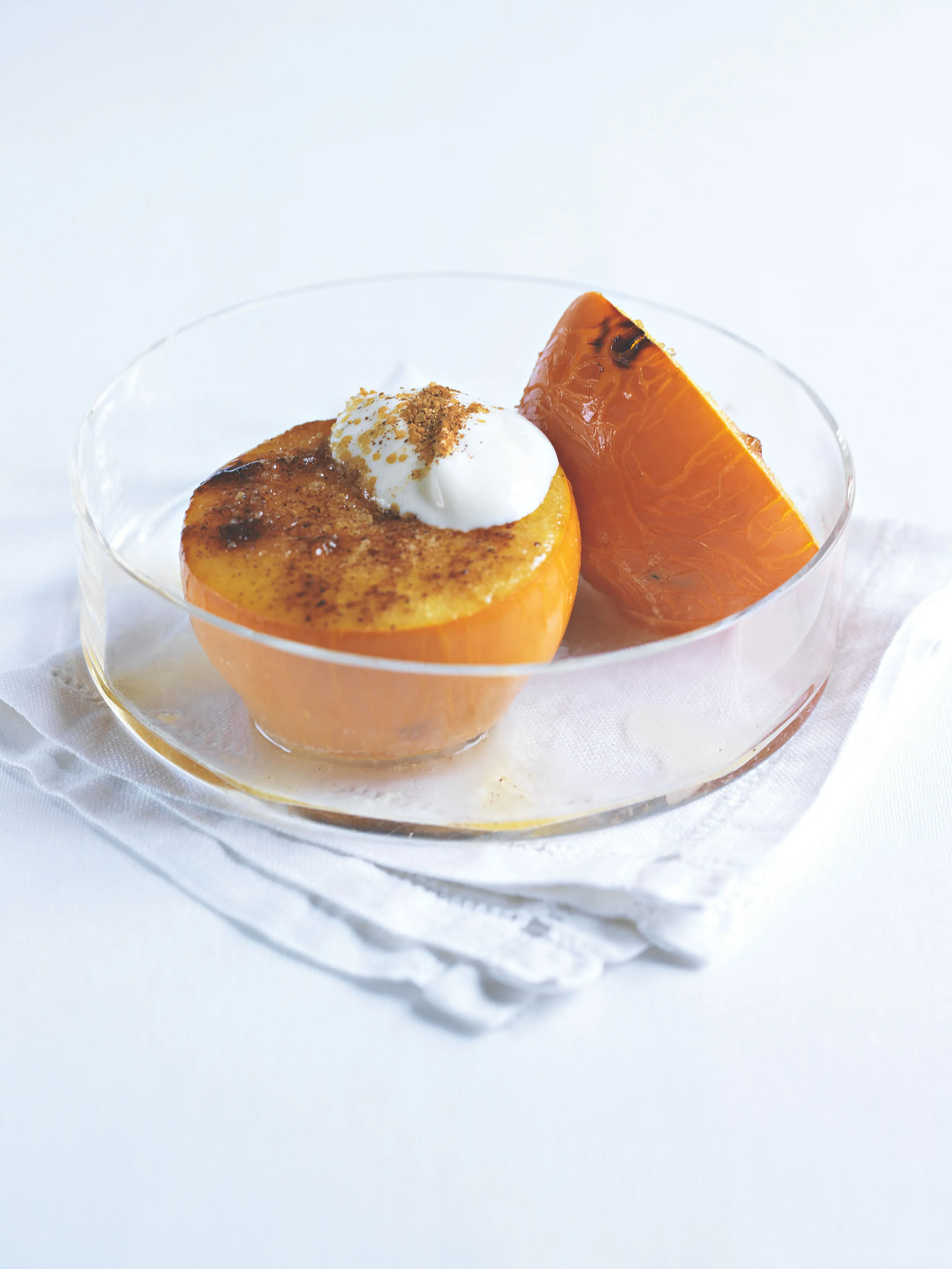 Hutná šťavnatá dužina se dá ze zralého ovoce jednoduše vyjíst lžičkou. Ale kombinace se zkaramelizovaným cukrem, okouzlující vůní skořice a svižnou zakysanou smetanou patří ke špičkovým úpravám, a přitom je tak snadná! Vybírejte ovoce, které vám bude připadat na svou velikost těžké, na omak poddajné a stejnoměrně oranžově zbarvené.