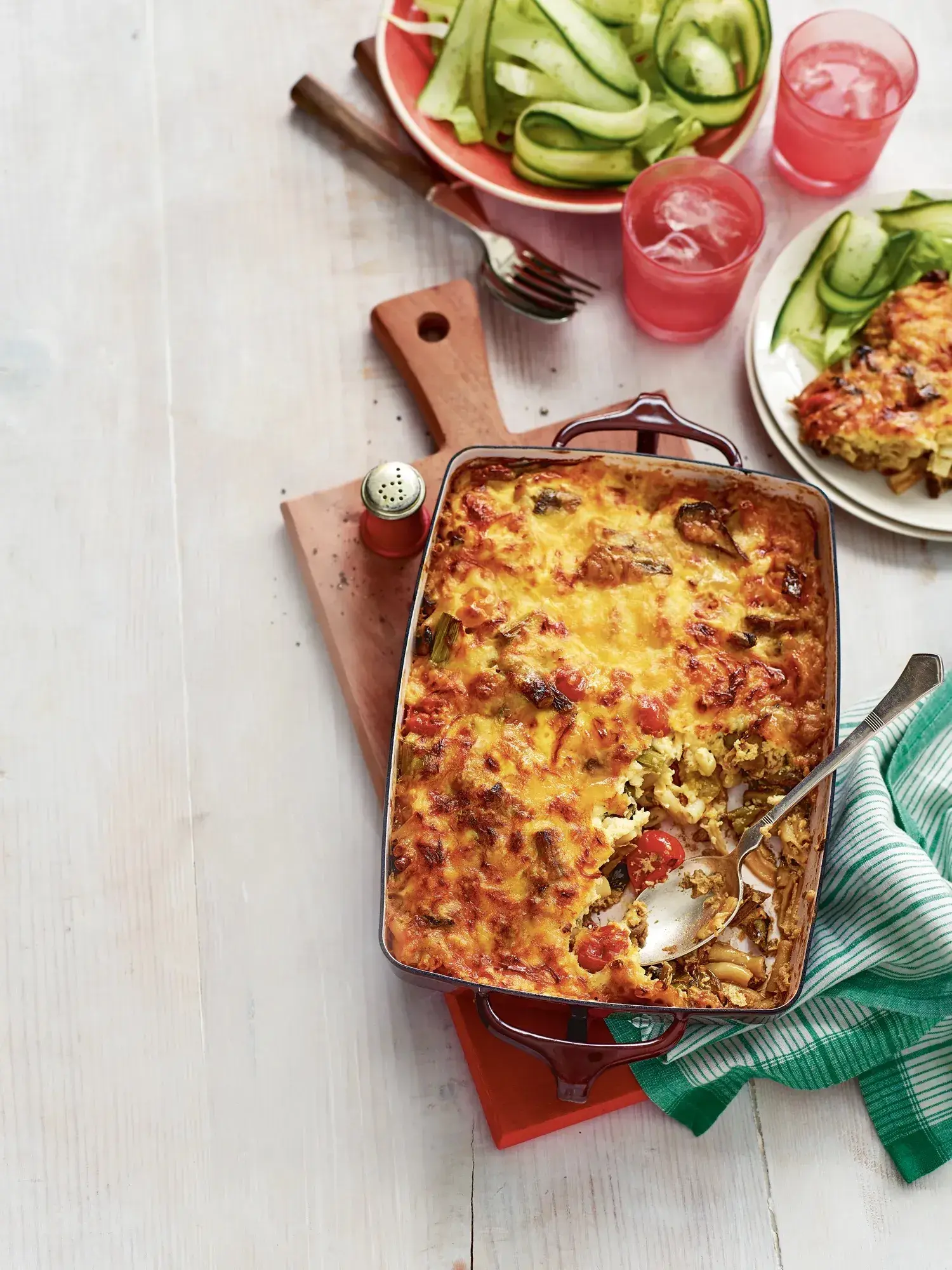 Zapečené těstoviny bez masa? Ale jistě. Přidejte do nich hlívu ústřičnou, rajčátka a jarní cibulku. Zapečte je s bešamelem a navrch nezapomeňte přidat pořádnou vrstvu strouhaného čedaru. Zapečené vegetariánské makarony přijdou vhod také jako rychlá rodinná večeře.