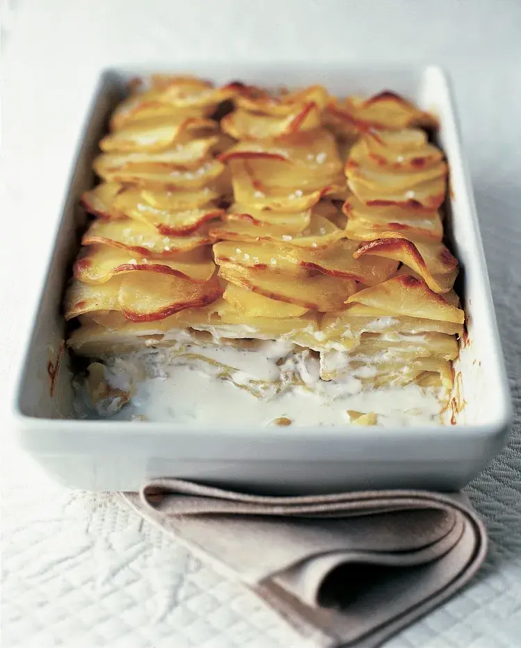 Zapečené brambory se smetanou jsou skvělou přílohou. Když do nich přidáte mleté nebo kuřecí maso, rázem máte hlavní chod skoro bez práce. Zapečené brambory skvěle ladí také s cuketou, brokolicí či květákem.