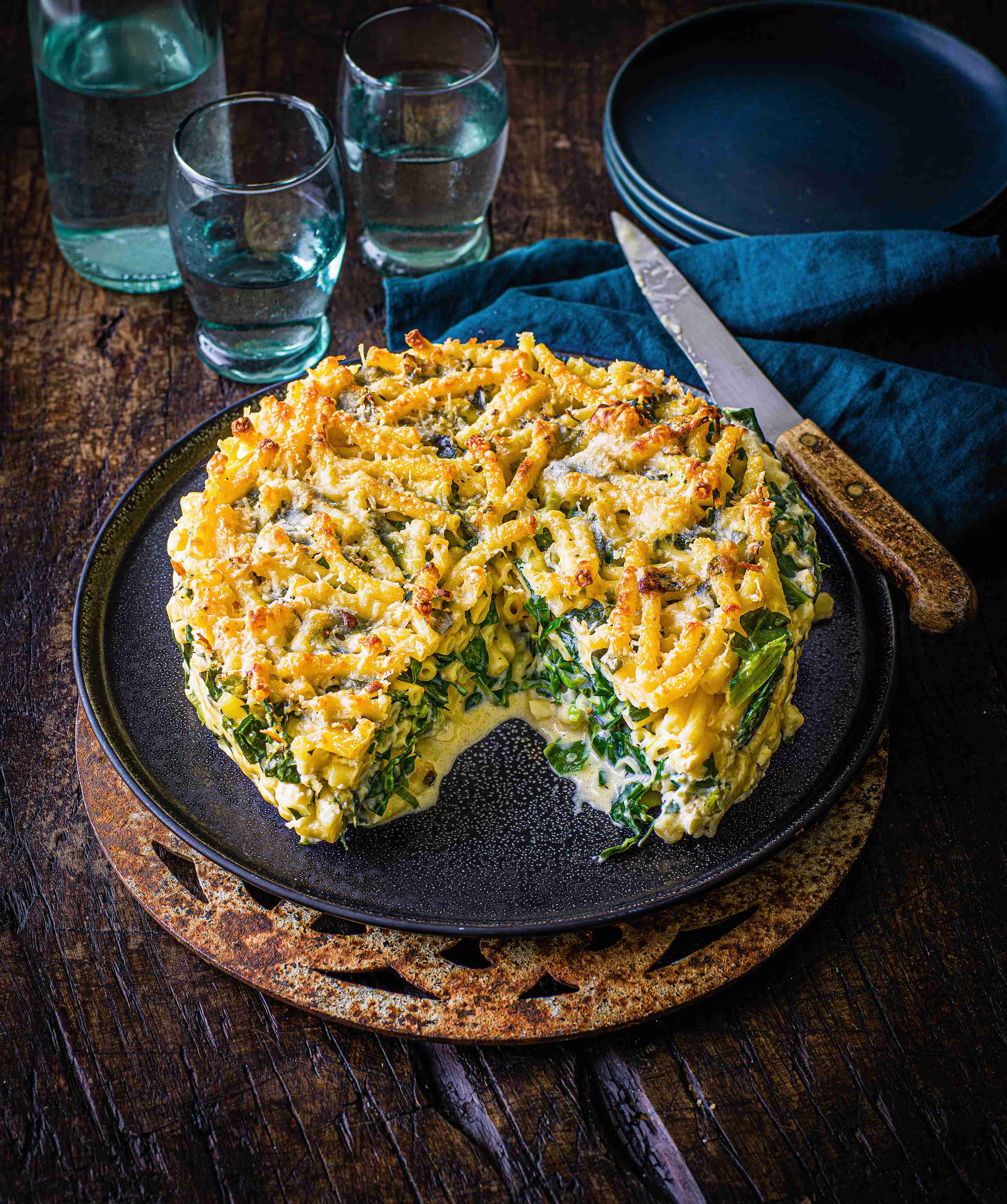 Nejlepší zimní jídla jsou ta, která se dají jíst lžící, ideálně na gauči, zachumlaní v dece... A přesně takové tyhle zapečené těstoviny jsou. Mají neodolatelnou sýrovou kůrčičku vypečenou pěkně dozlatova a jsou dokonale krémové. Ale nebojte, celý pokrm jsme vyvážili poctivou porcí zeleného lupení, která se skrývá uvnitř.