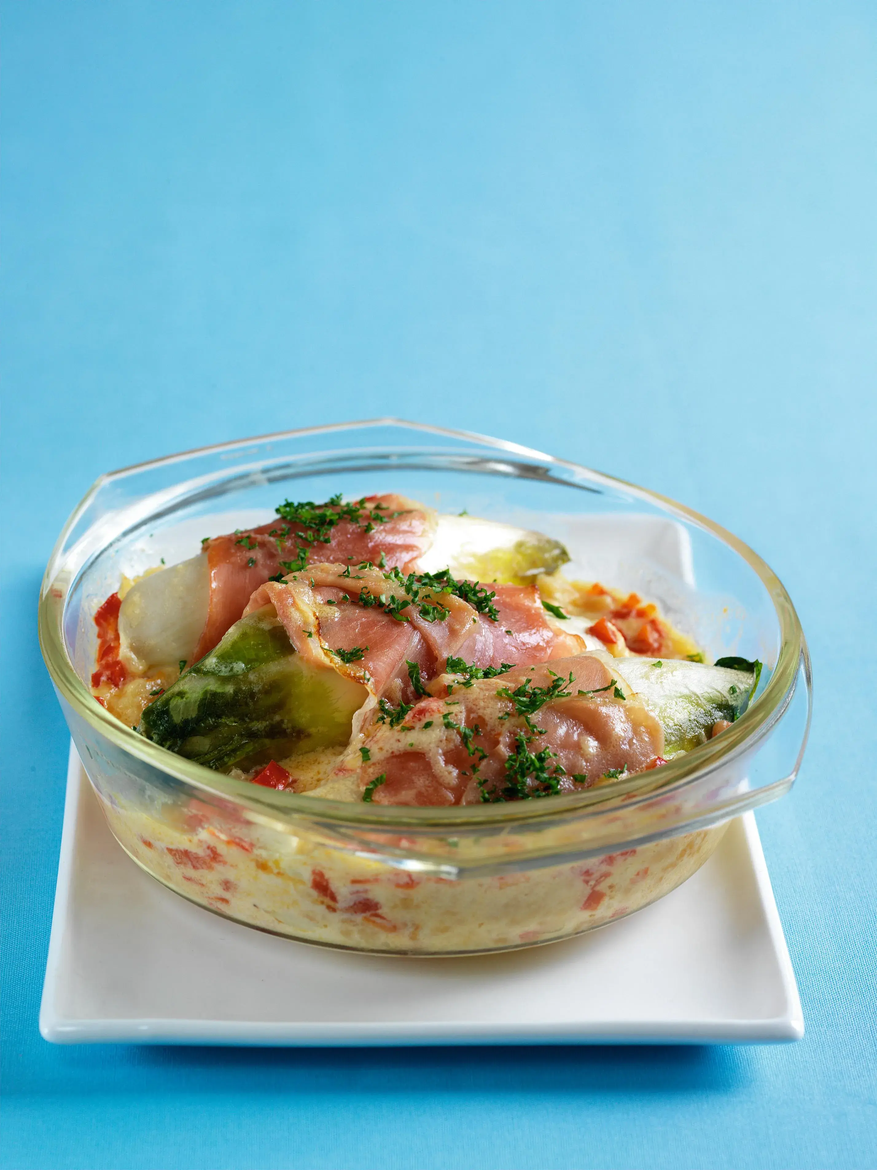 Recept z repertoáru belgické kuchyně, kde je čekanka ve velikánské oblibě. Syté, ale delikátní!