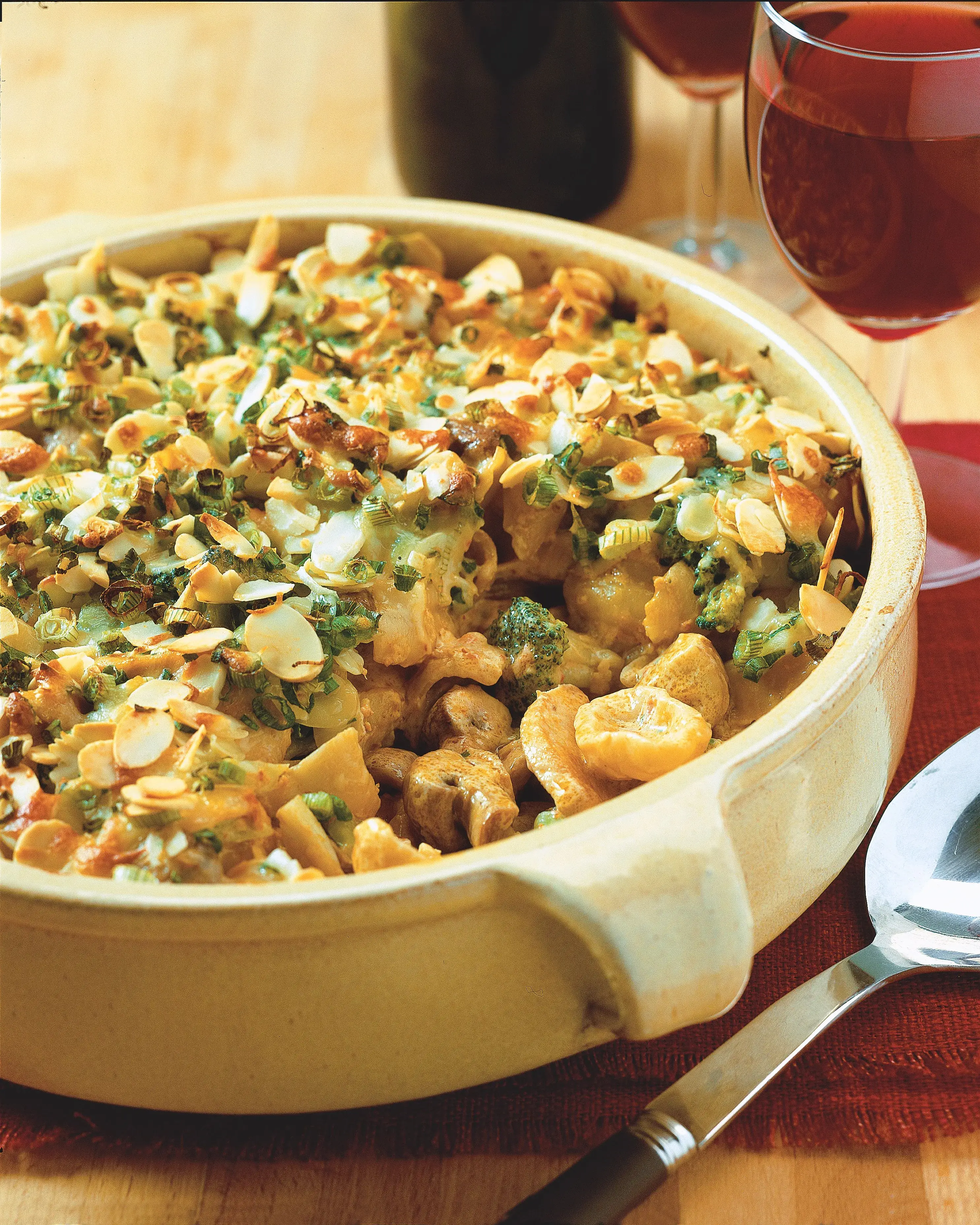Zapečené těstoviny jsou velice variabilní jídlo. Stačí těstoviny doplnit surovinami podle chuti, zalít smetanou nebo vajíčkem, zasypat sýrem a vložit do trouby. Do hodiny máte na stole. Zapékané těstoviny s kuřetem a brokolicí představují symfonii chutí, kterou navíc doplní žampiony a samozřejmě sýr.