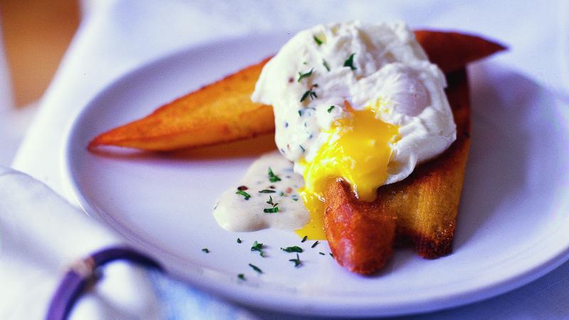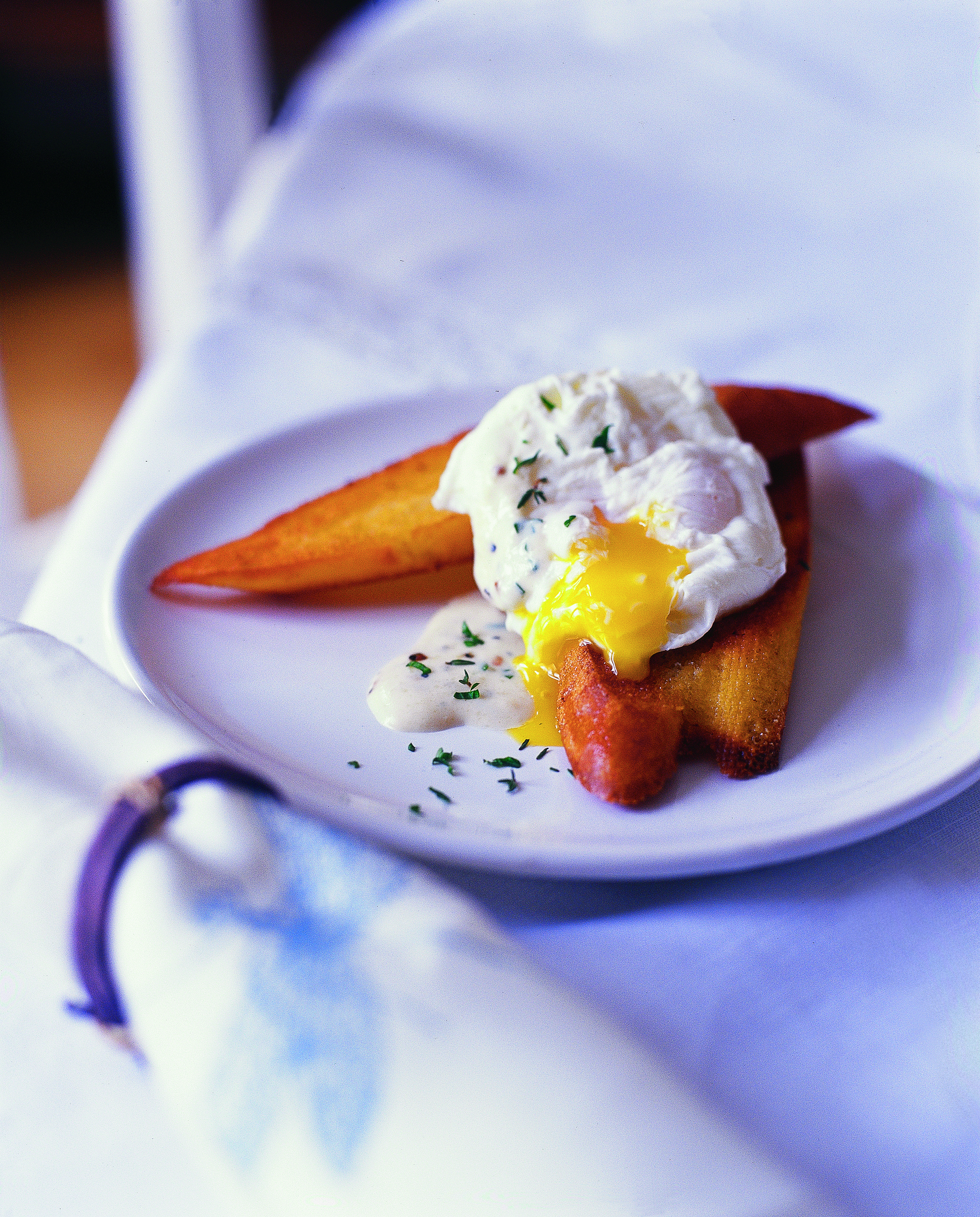 Vyklepnout vejce do misky, nechat je sklouznout do naběračky ponořené v horké tekutině, takže bílek lehce ‚zastře‘ ještě vláčný žloutek – pošírování chce trochu cviku. Ale žádné strachy, zvládnete to!
