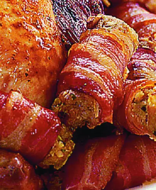 Chytrý recept, který má hned dvojí využití – jako nádivka do sváteční krůty a jako základ ,párečků‘ ve slanině, které si všichni zamilují. Směs jablek, celeru a vlašských ořechů chutná bezvadně!