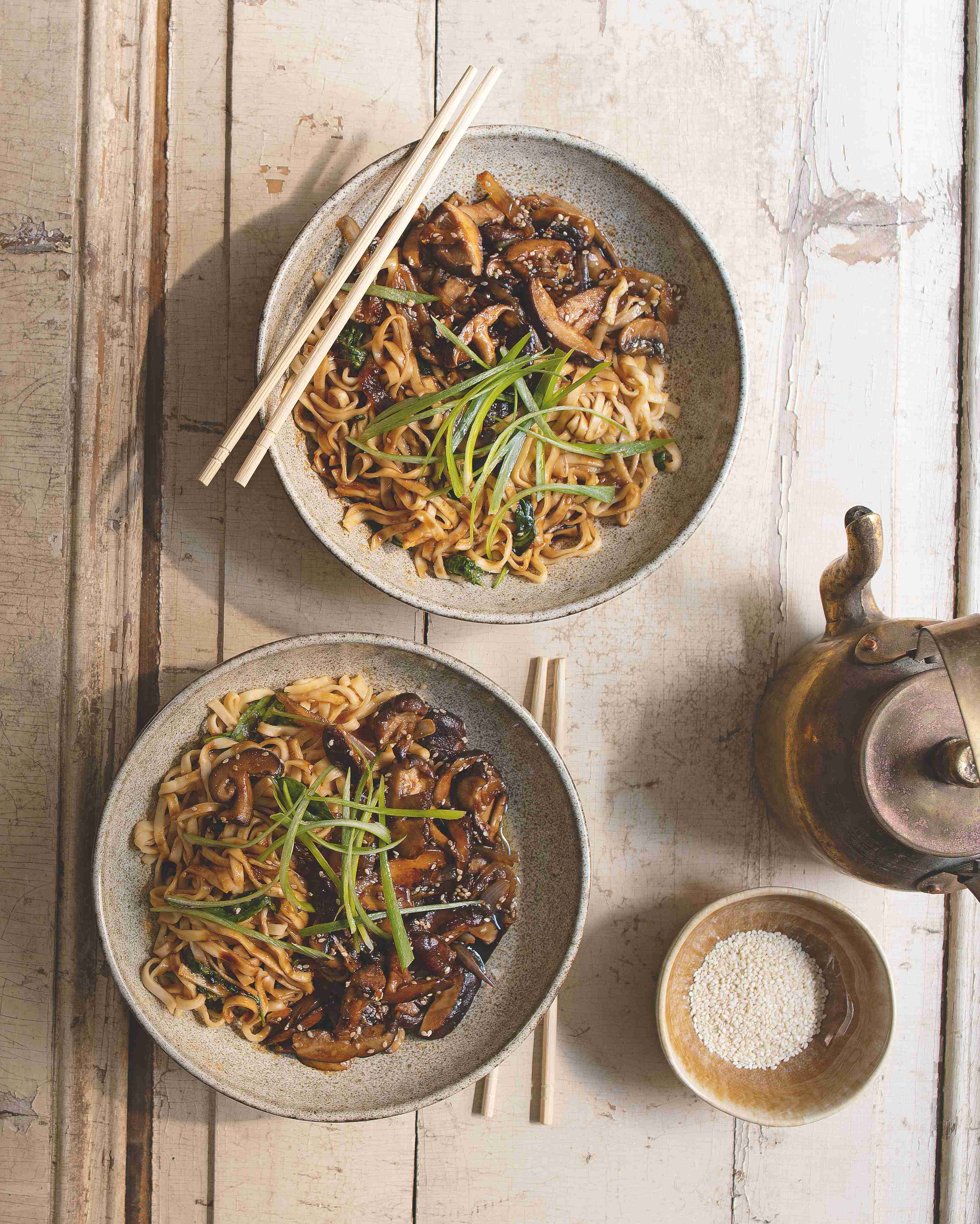 Rychlé jídlo na dny, kdy je potřeba trochu vzpruhy. Tyhle nudle vás postaví na nohy. Hotové jsou v cukuletu – příjemně slané, trochu štiplavé a nabité chutí. Pokud máte možnost, dejte před žampiony přednost výraznějším houbám šiitake.