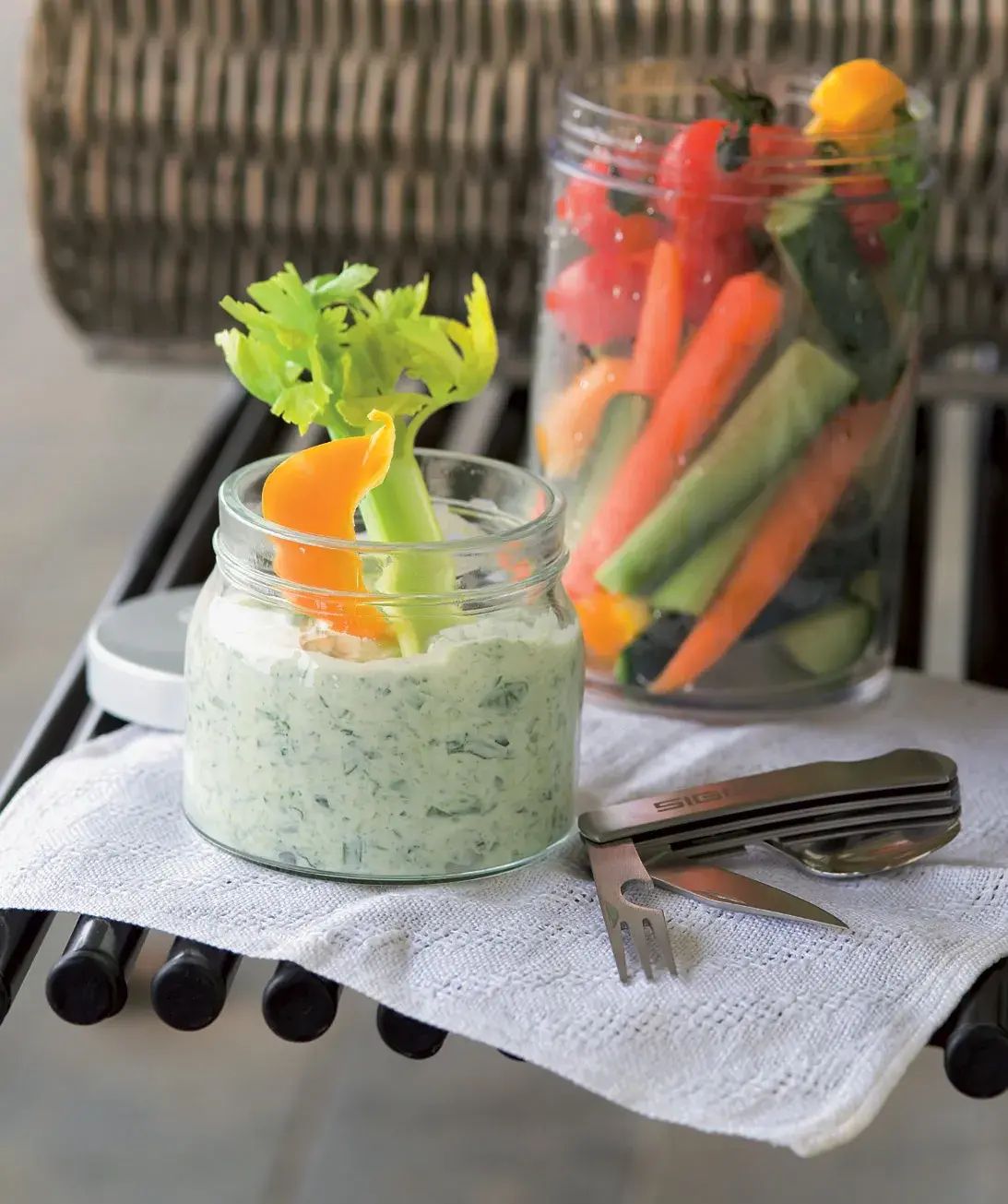 Čerstvá zelenina nakrájená na špalíčky a lahodný dip z bílého jogurtu s bylinkami si spolu skutečně rozumí. Toto zdravé chroupání uvítáte nejen při sledování televize, ale třeba také jako rychlé pohoštění pro nečekanou návštěvu.