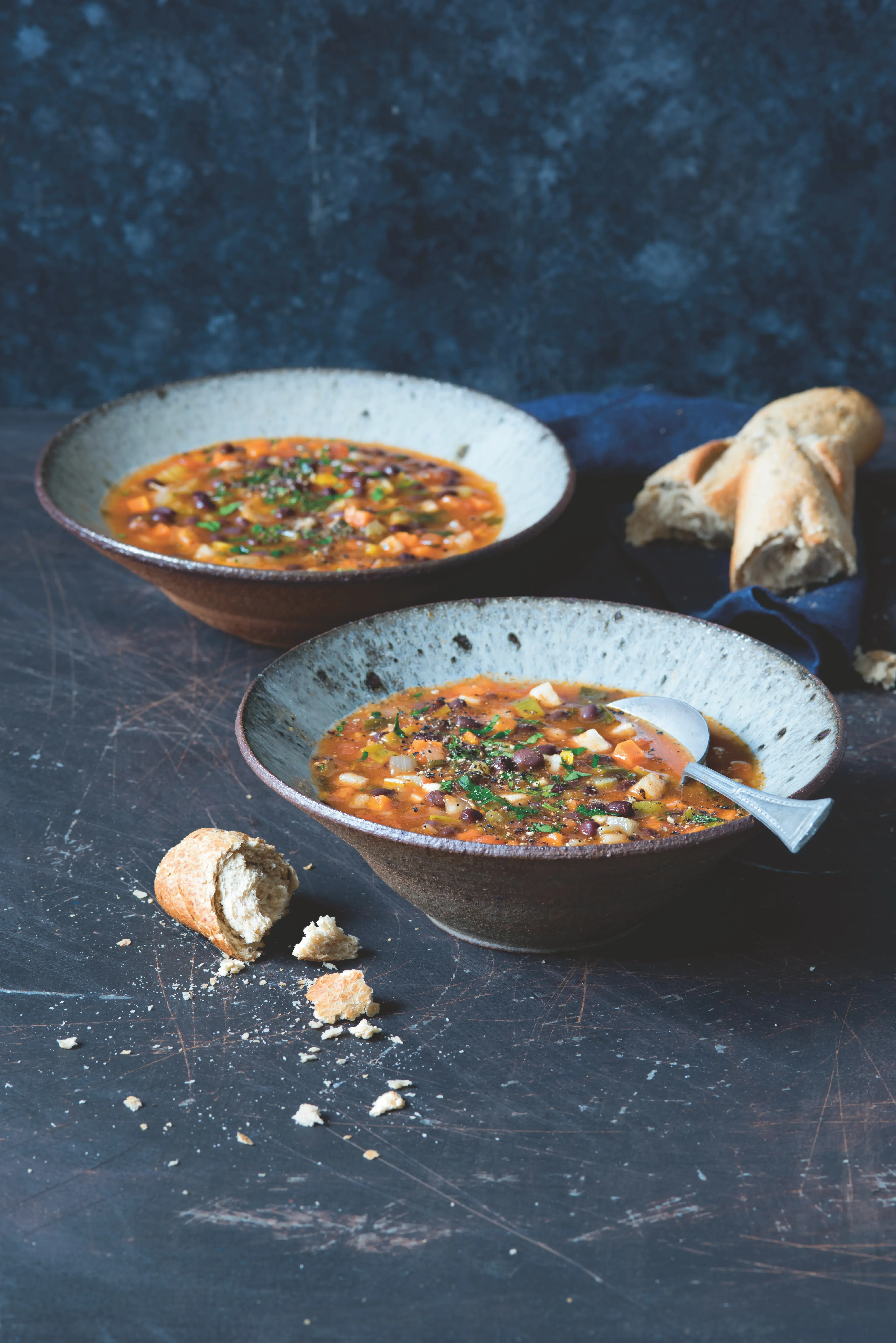 Zeleninová polévka s azuki je sytá, výživná a naprosto delikátní! Sušená pomerančová kůra dodá polévce nevšední chuťový tón. Můžete ale použít také čerstvou citronovou kůru anebo citrusovou notu úplně vynechat.