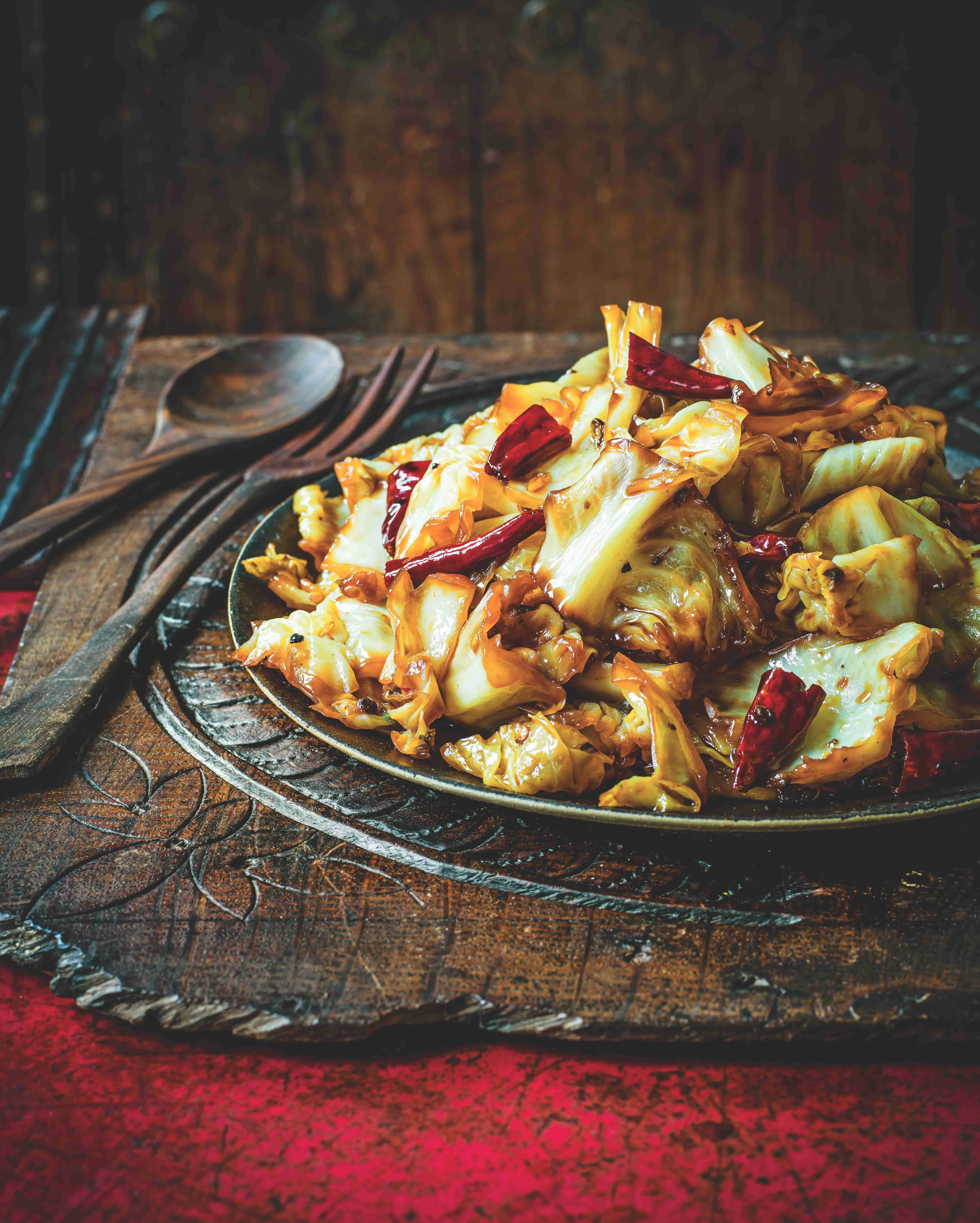 Označení ,po domácku’ v sečuánském vaření znamená, že chuti jsou poněkud tlumenější než u pokrmů, které byste dostali na stůl v restauraci. Ne tak os- tré, ne tak kyselé, malinko sladké, ale v každém případě velmi aromatické. Na tomto pokrmu je také vidět obliba sušených papriček v Sečuánsku.