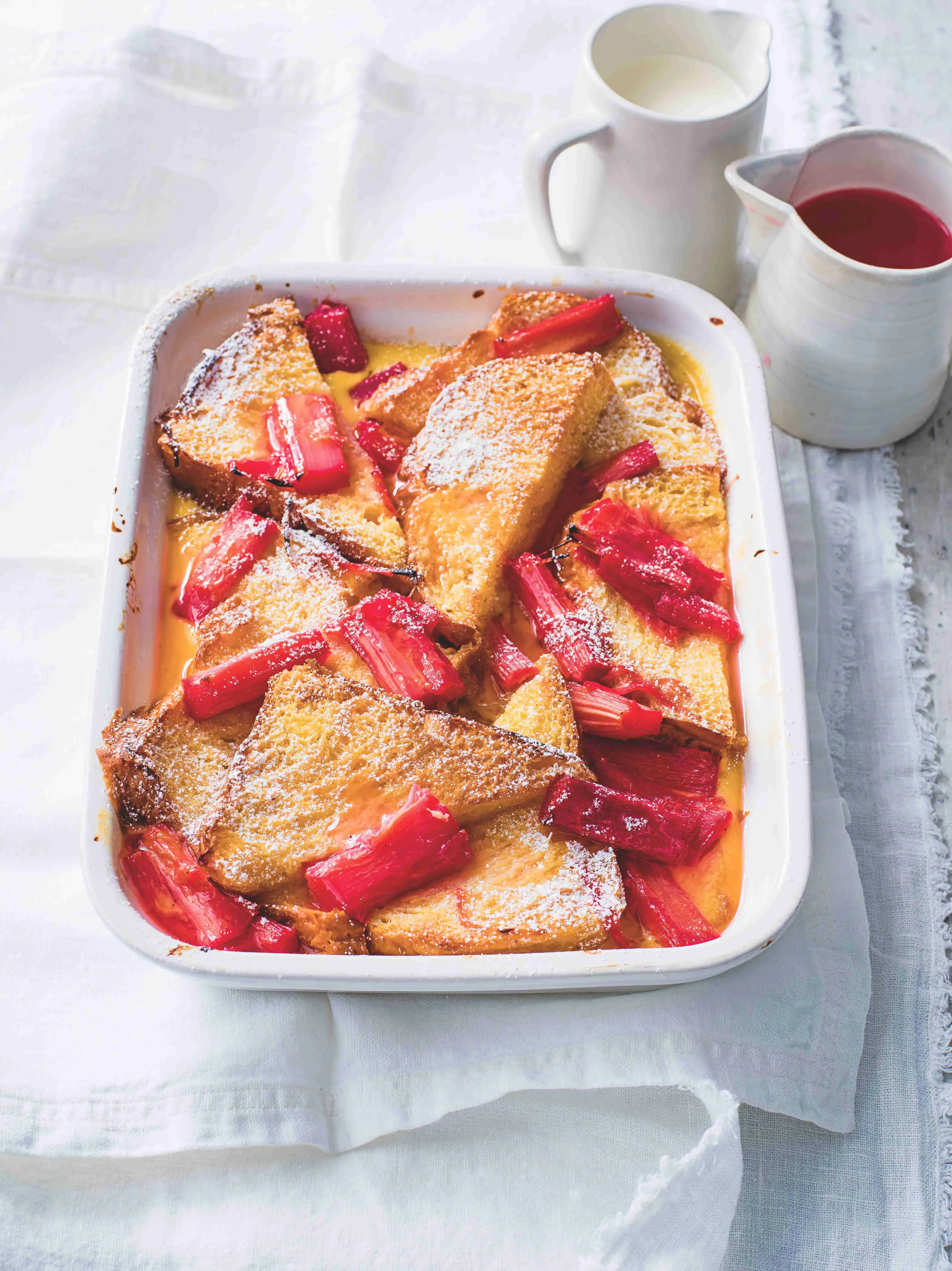 Na žemlovku potřebujete kromě staršího pečiva především tu nejrůžovější rebarboru, jakou seženete. Pak ji hrdě můžete podávat i jako slavnostní dezert!