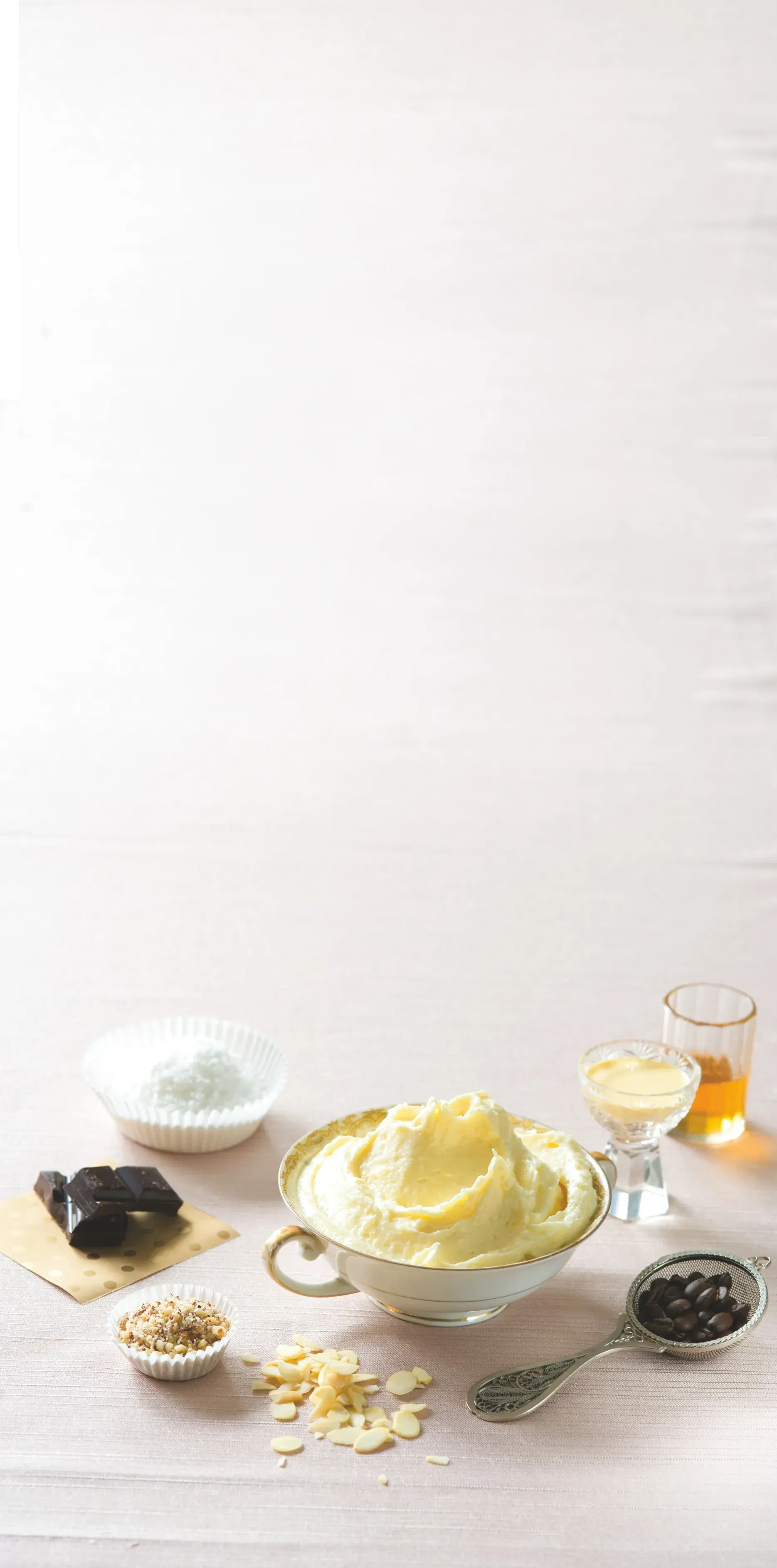 - Mandlový - Do základního krému vmíchejte 4 lžíce oloupaných a jemně nastrouhaných nebo umletých mandlí.