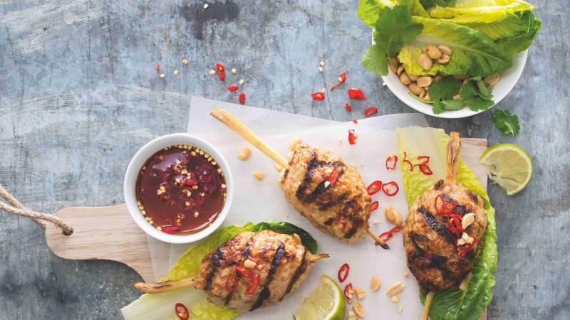 Na tyhle asijské špízy nepotřebujete špejle ani jehly! Jako jejich náhrada vám totiž skvěle poslouží citronová tráva, která navíc maso příjemně provoní...