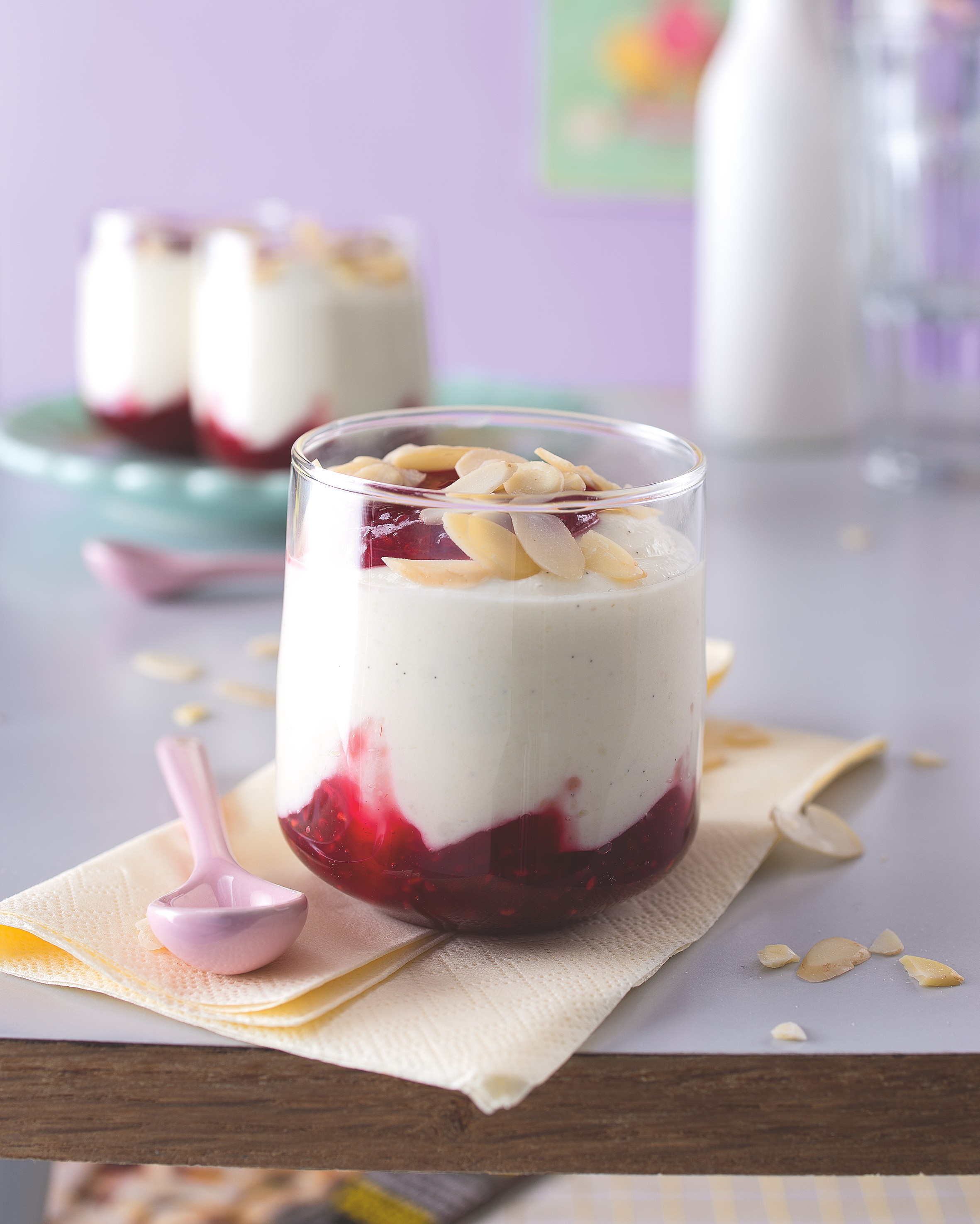Flameri, známý dezert z mléka a krupice, jsme ještě vylepšili tvarohem a šlehačkou a podáváme jej ve skleničce.