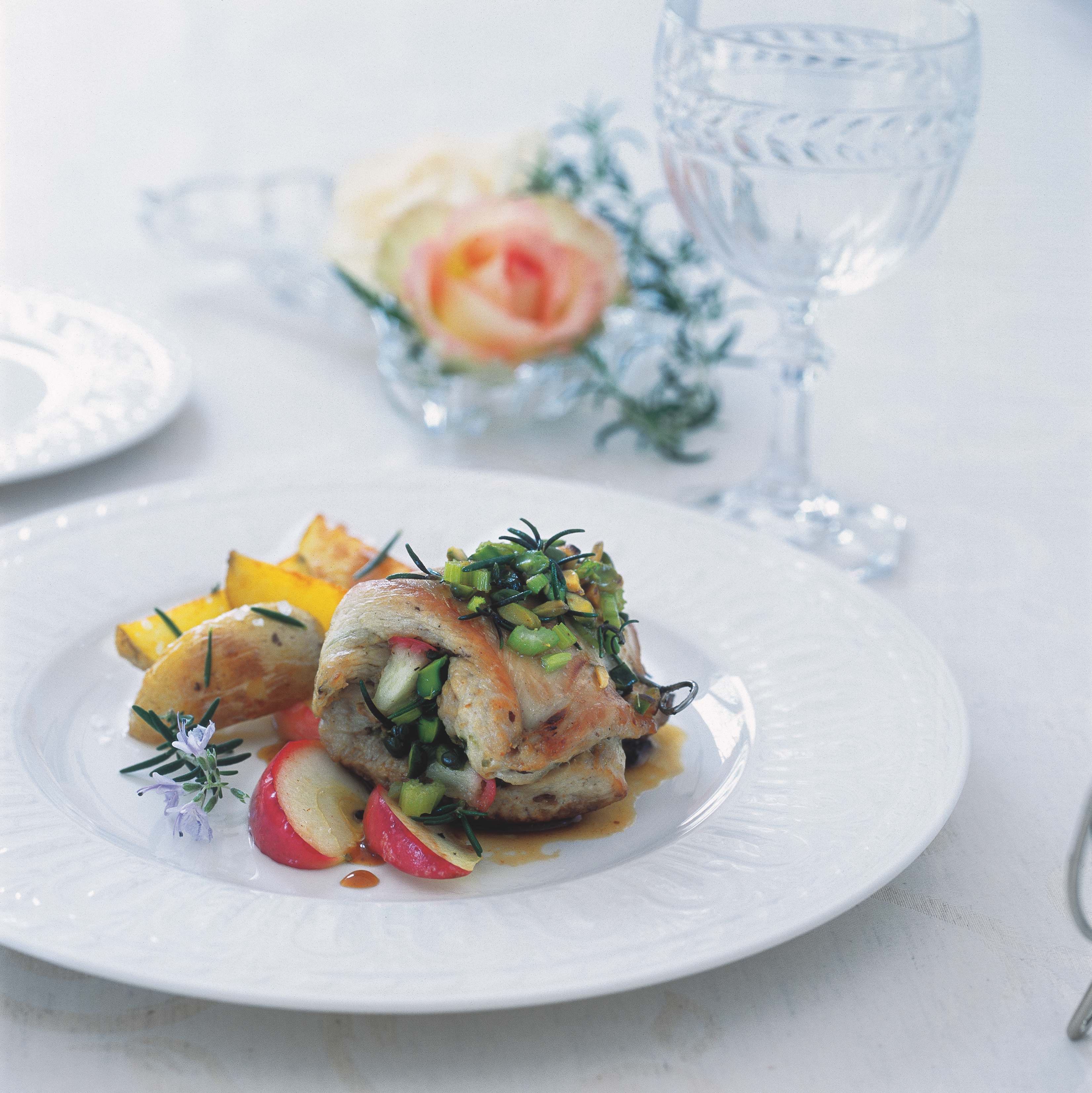 Obě ingredience jdou s libovým krůtím masem skvěle dohromady: jablka zjemní vůni masa a dodají šťávu, oříšky zase křupavost a barvu. Výsledkem je velmi nevšední, lahodná kombinace.