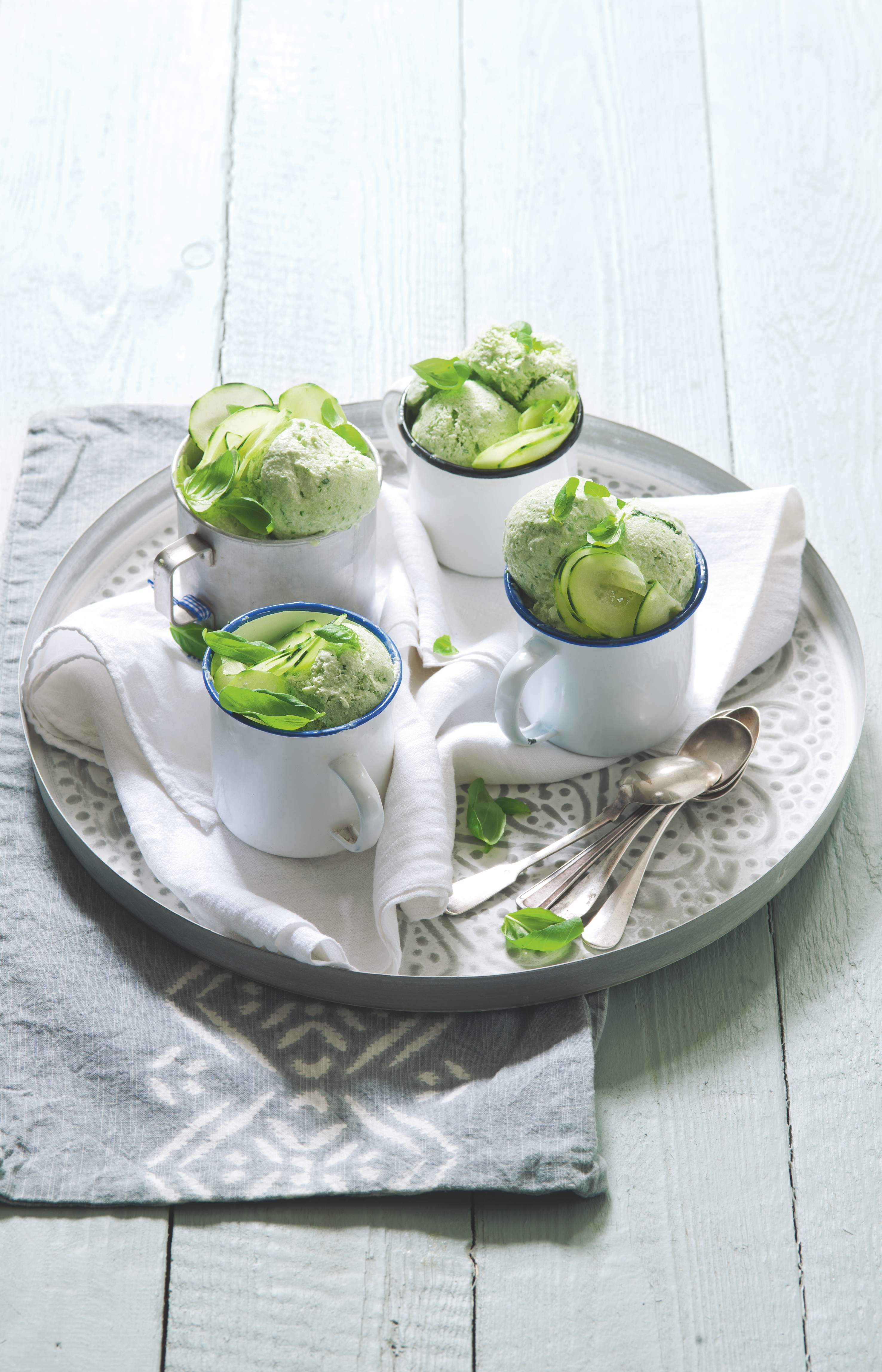 Jogurt má jemnou přirozenou chuť po okurkách a bazalce. Chcete-li, aby byl výraznější, můžete ho dosladit krupicovým cukrem či podávat naslano s čerstvě mletým pepřem, vločkovou mořskou solí a balzamikovým krémem.