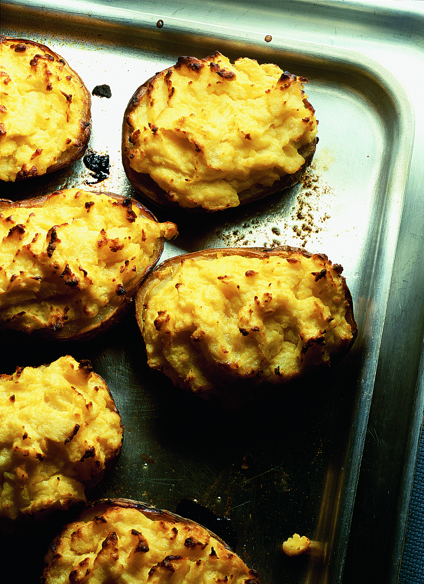 Křupavá kůrčička ze slupek a krémový vnitřek – tahle verze bramborové kaše opravdu stojí za to! K zapečení ještě teplých brambor stačí 15 až 20 minut.