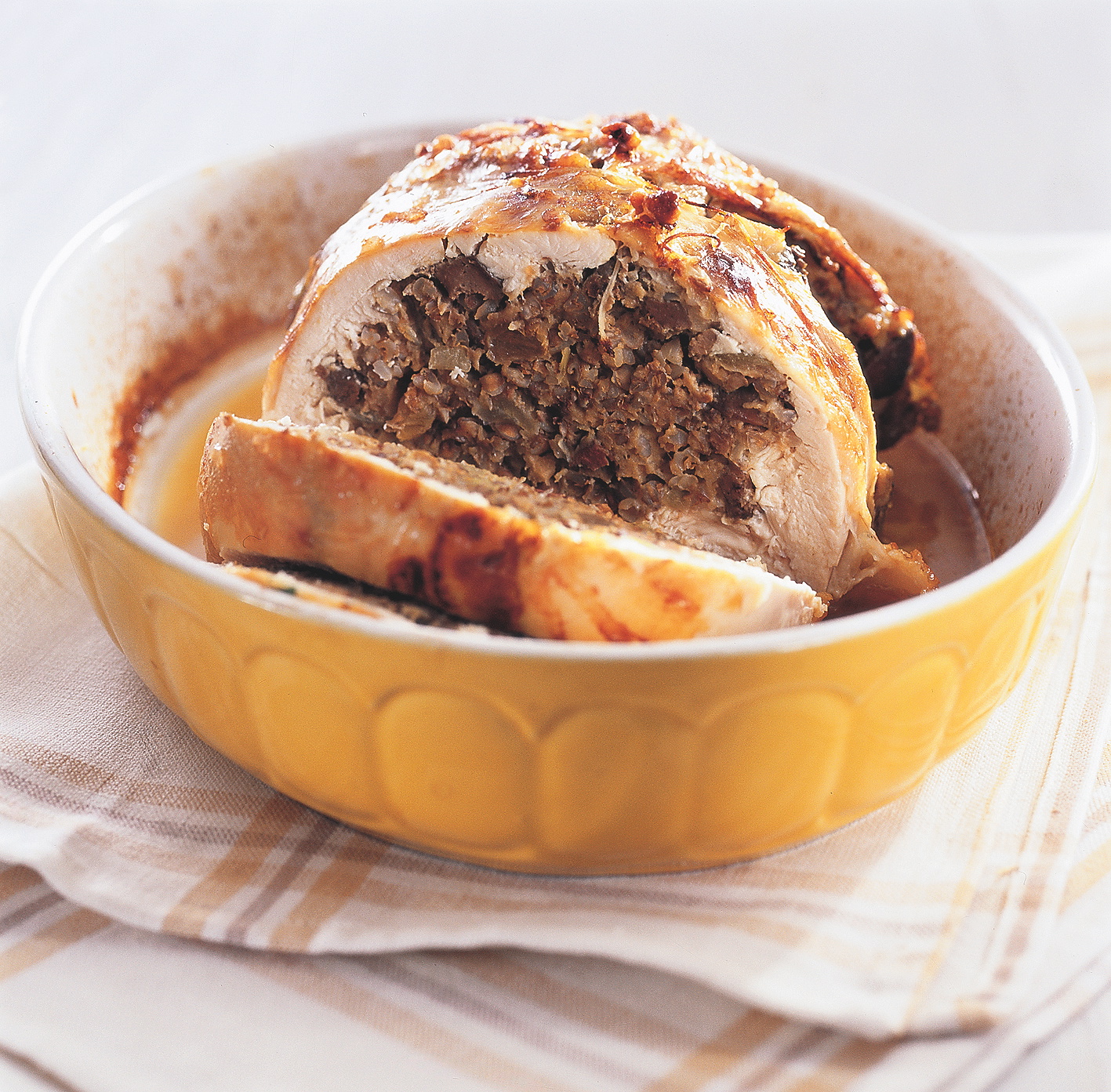 V obalu z kuřecí kůže s vrstvičkou masa se ukrývá fantasticky šťavnatá nádivka. Tenhle zvláštní štrúdl je výborný teplý i studený, jako hlavní jídlo, nářez nebo luxusní příloha.
