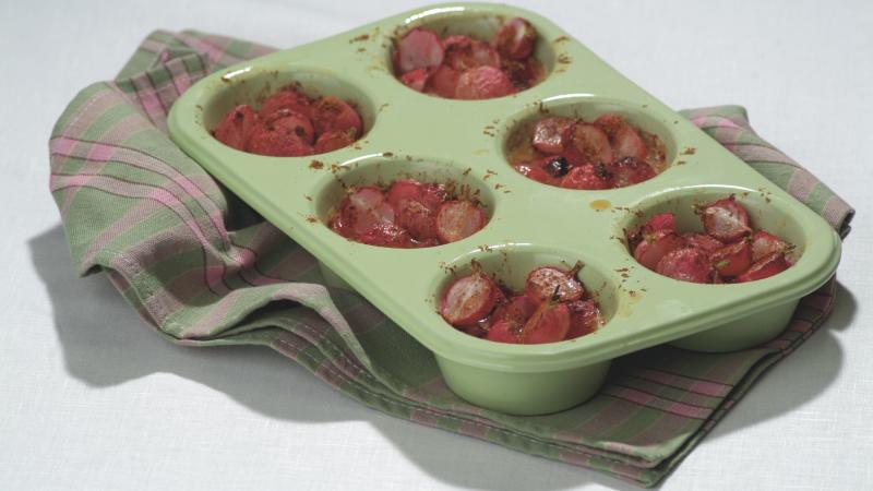 Tahle variace bude ještě jemnější, když ředkvičky pět minut před pečením předvaříte, ideálně v páře.