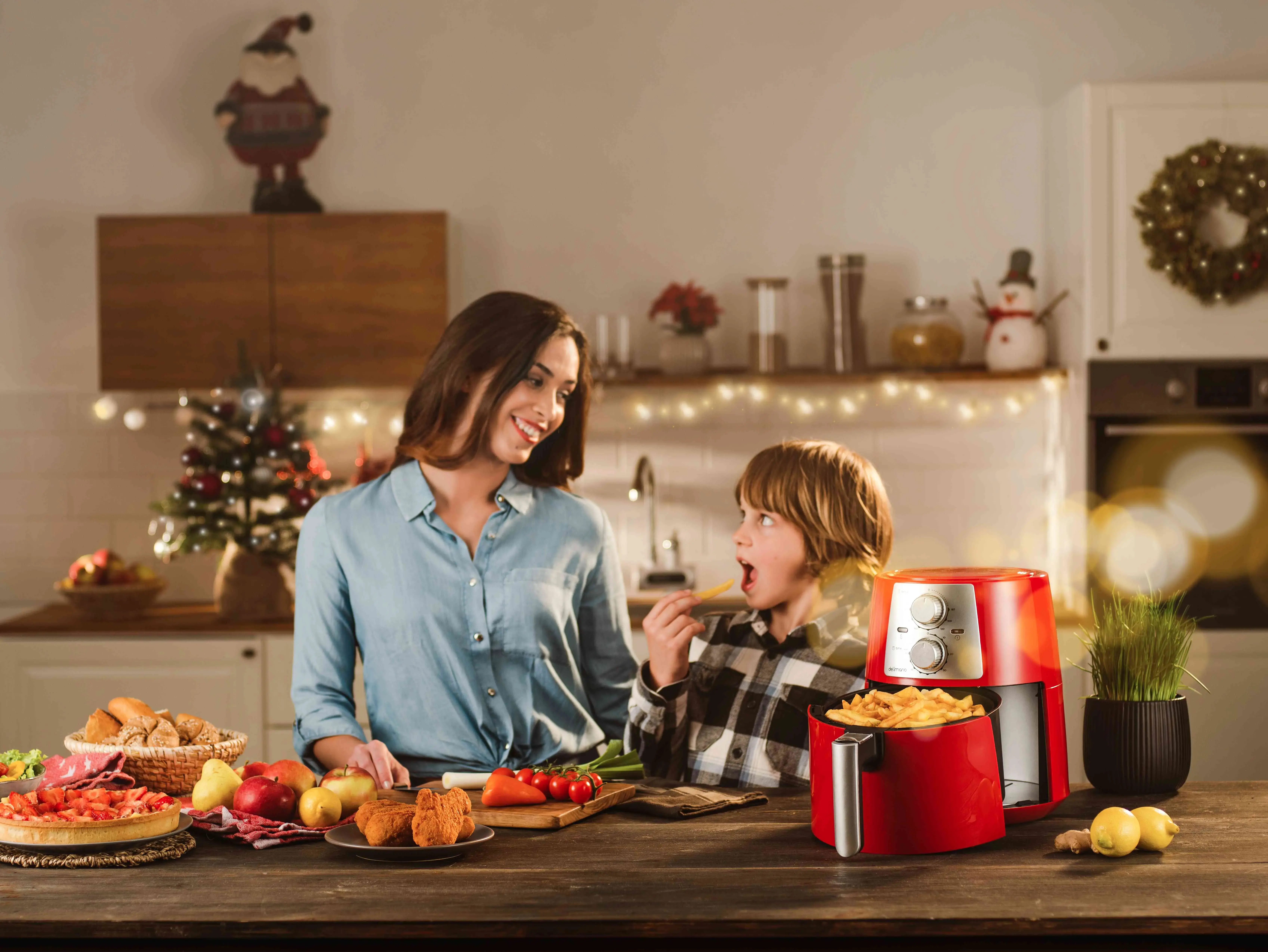 Váháte, zda si vůbec horkovzdušnou fritézu pořídit? Tady je pár dobrých důvodů: Smažené jídlo má úžasnou chuť: navrch křupavé a zlatavé, uvnitř křehké a šťavnaté. I proto mu jen málokdo odolá. Ale daň, kterou platíme za konzumaci smažených jídel, bývá rychle viditelná na našem zdraví. Horkovzdušná fritéza představuje dobrou alternativu – křupavé hranolky jsou v ní hotové během několika minut, přitom mají o 95 % méně tuku a polovinou kalorií, ve srovnání s těmi, které dostanete v tradiční restauraci. A to bez ztráty chuti! Tu můžete jen vylepšit, třeba přidáním oblíbených bylinek či koření.