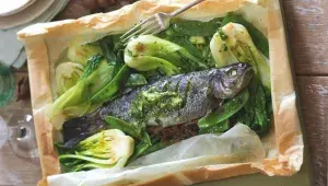 Grilovaná makrela s estragonem, pečenými citrony & bruschettou