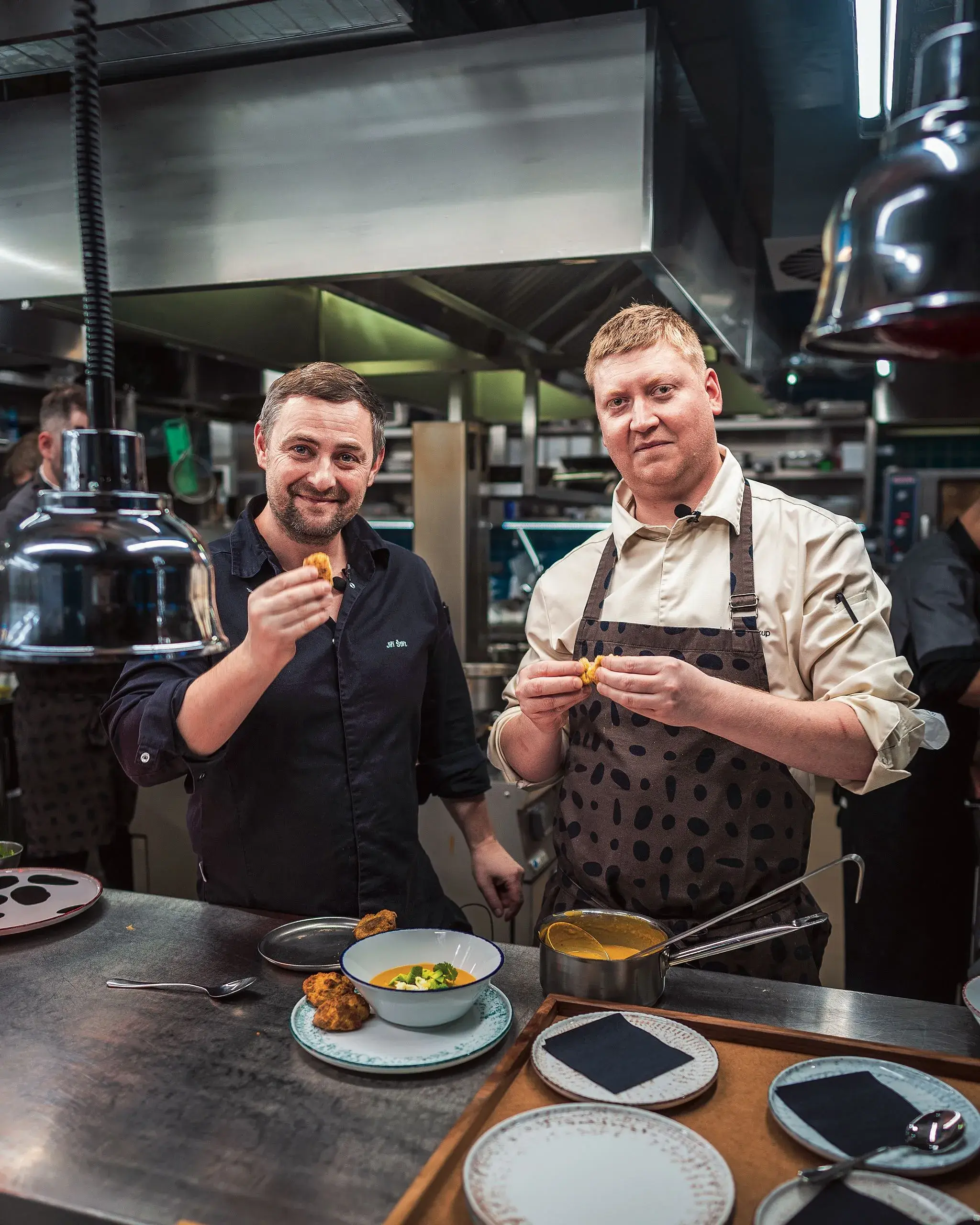 Pokud chcete velejemnou kaši, protřete je navíc kartou přes cukrářské síto. „Pak svařte třicetiprocentní smetanu a máslo, přidejte brambory, zahřívejte a míchejte metličkou. Kaše posléze zhoustne,” dodává Lukáš Soukup a jeho kolega Jiří Štift doplňuje: „Na talíři by se měla rozlít jako risotto.”
