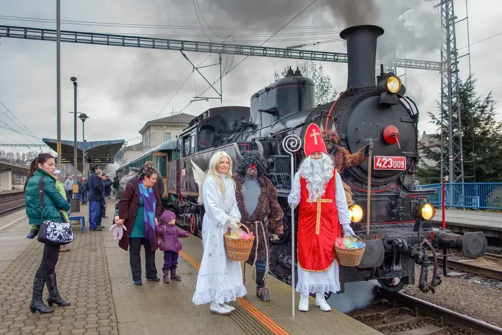 Svézt se z Valašského Meziříčí do Valašských Klobouk na Valašský mikulášský jarmek zvláštním mikulášským vlakem taženým parní lokomotivou Velký bejček je zážitek nejen pro šotouše! :-) Mikulášský vlak se soupravou historických vozů odjíždí z Valašského Meziříčí v 8:20. Z Valašských Klobouk pokračuje vlak v 10:20 do Bylnice, odtud vyrazí v 11:40 zpět do Valašských Klobouk a ve 14:05 se vydá na zpáteční cestu do Valašského Meziříčí (příjezd 15:33). Ve vlaku vám budou dělat společnost Mikuláš, anděl a čert, kteří rozdají dětem drobné dárky.