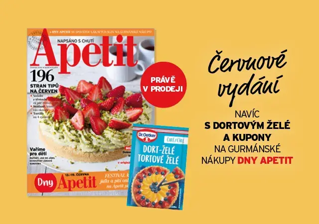 Co vás čeká na stránkách nového Apetit? Vychutnejte si s námi večeře s těstovinami či ty nejlepší jahodové recepty z naší nové kuchařky, uspořádejte pro přátele hostinu pod širým nebem, naučte se kouzlit s tortillami, zpracovat kedlubnové listy nebo připravit pravé italské rizoto. Podělíme se s vámi i o recepty na luxusní snídaně a naše tajné finty, jak děti bez nátlaku naučit jíst více luštěnin či zeleniny. Těšit se můžete i na rozhovor s čerstvou vítězkou soutěže Peče celá země Martinou Kynstlerovou.