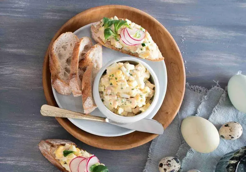 Dobře ochucený vajíčkový salát si nejlépe vychutnáte s čerstvým či opečeným pečivem. Inspirovat se můžete receptem na vajíčkový salát, kam jsme přidali uzeného lososa. Další inspiraci na využití vařených vajec naleznete pod tímto článkem.