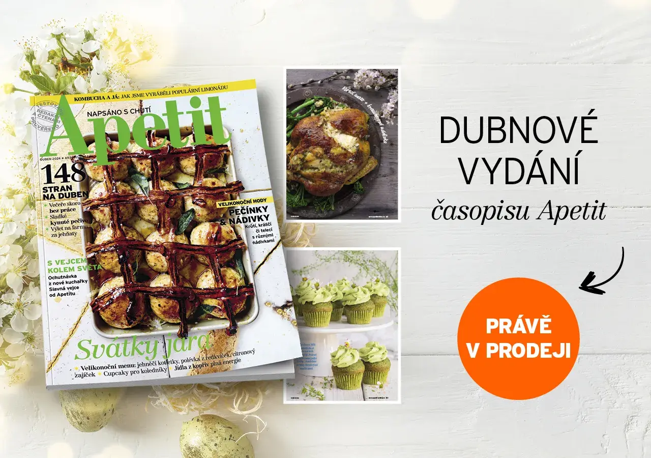 Oslavte Velikonoce a příchod jara s dubnovým Apetitem, který je v prodeji 14. 3. Čeká vás velikonoční menu, ochutnávka z nové kuchařky Slavná vejce, vaření s kopřivami, masové pečínky s nádivkami i sladké kynuté moučníky nebo jarní cupcaky jako stvořené malé i velké pro koledníky.