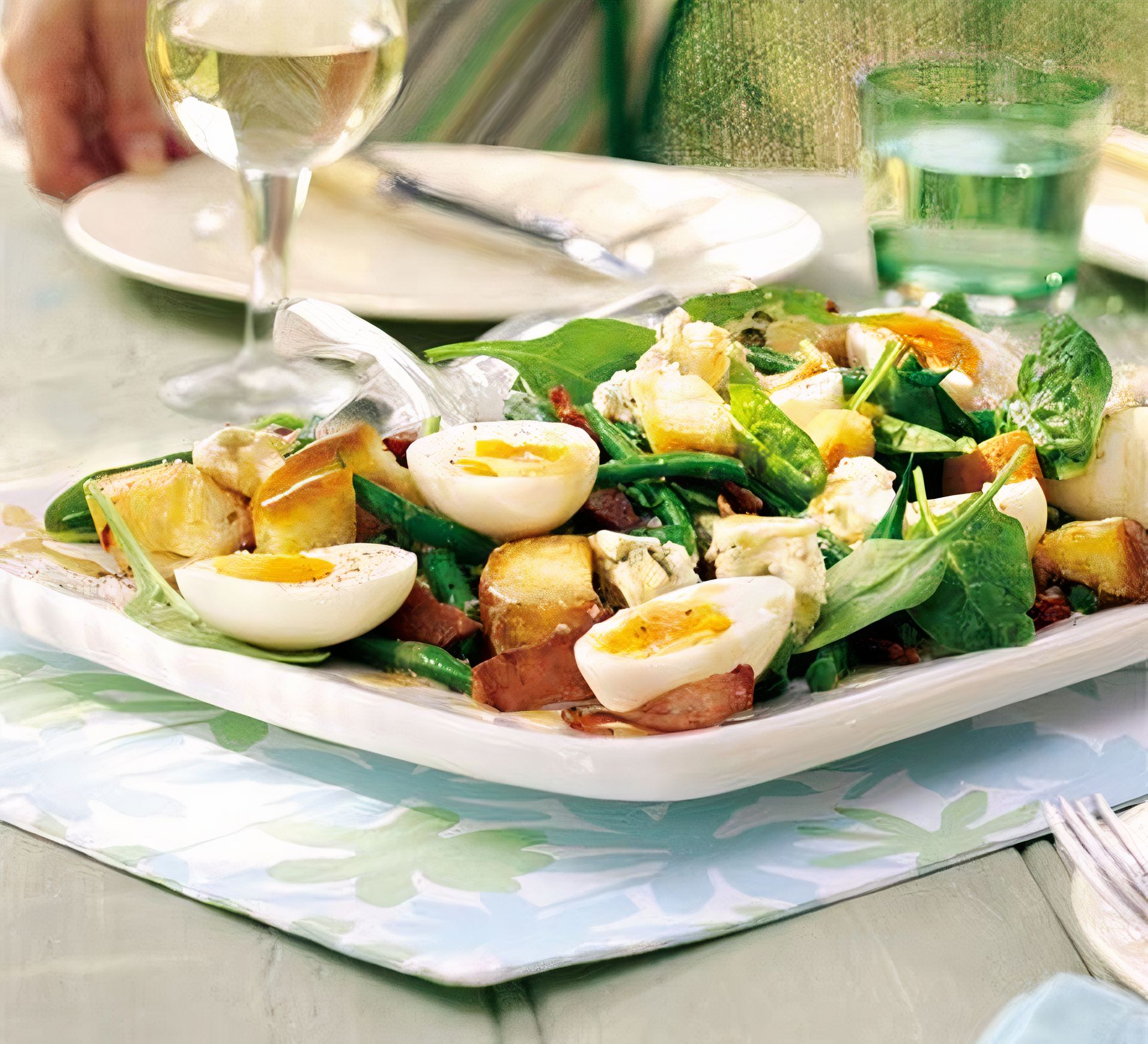 Salát se špenátem a zelenými fazolkami je senzační přílohou k rybám, pečeným masům i podávaný jen tak s čerstvým bílým pečivem.