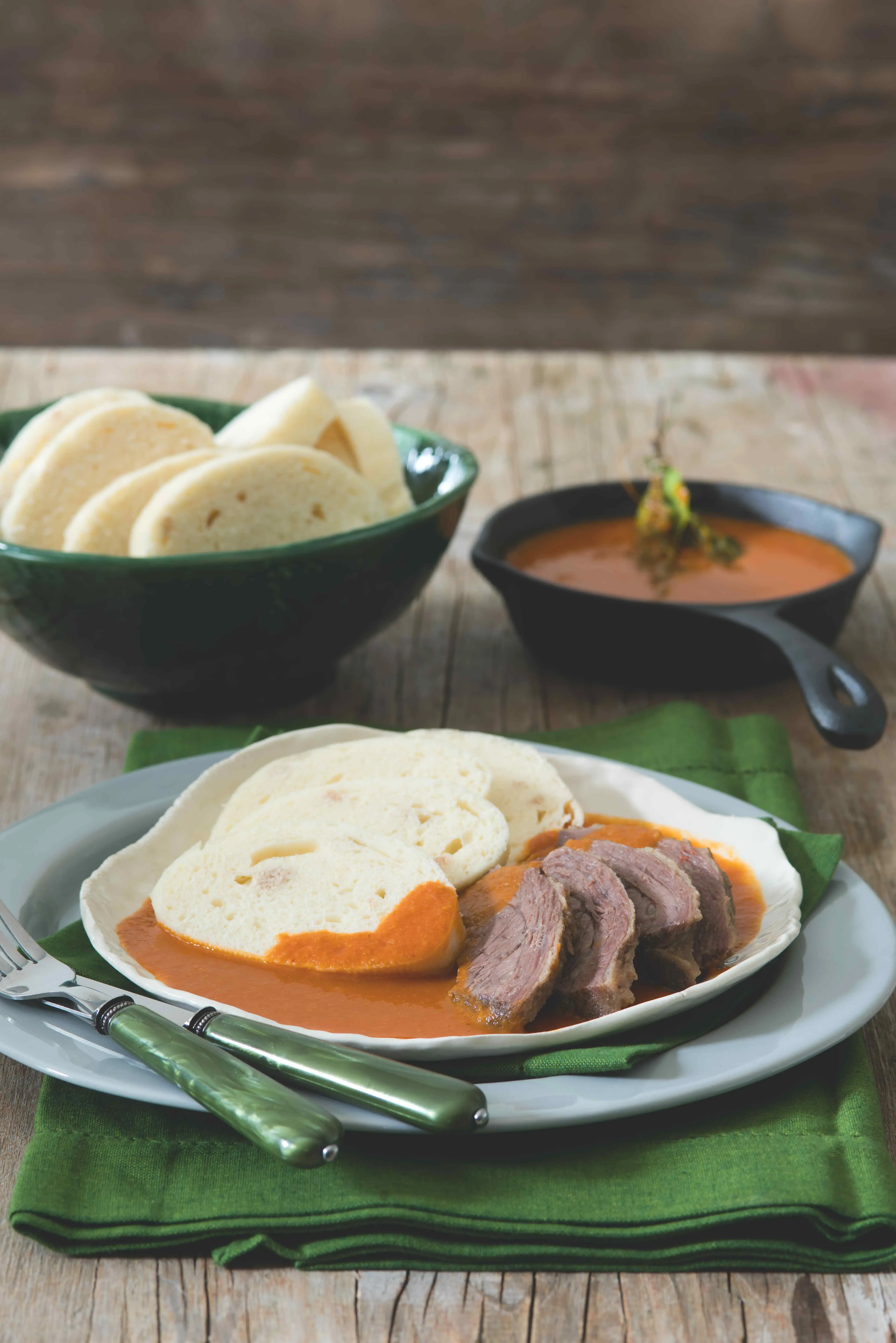 - Rajská omáčka s hovězím: Tahle verze je ta, kterou vařily naše babičky. Potřebujete kus hovězího masa (nejlépe plec), cibuli, zeleninu, rajčatový protlak, vývar, cukr, ocet a samozřejmě to správné koření. Základem je pomalu dušené maso, které se pak nakrájí a vrátí do hladké, propasírované omáčky. Je to jídlo, které vás nikam nehoní – a právě proto chutná tak, jak má.