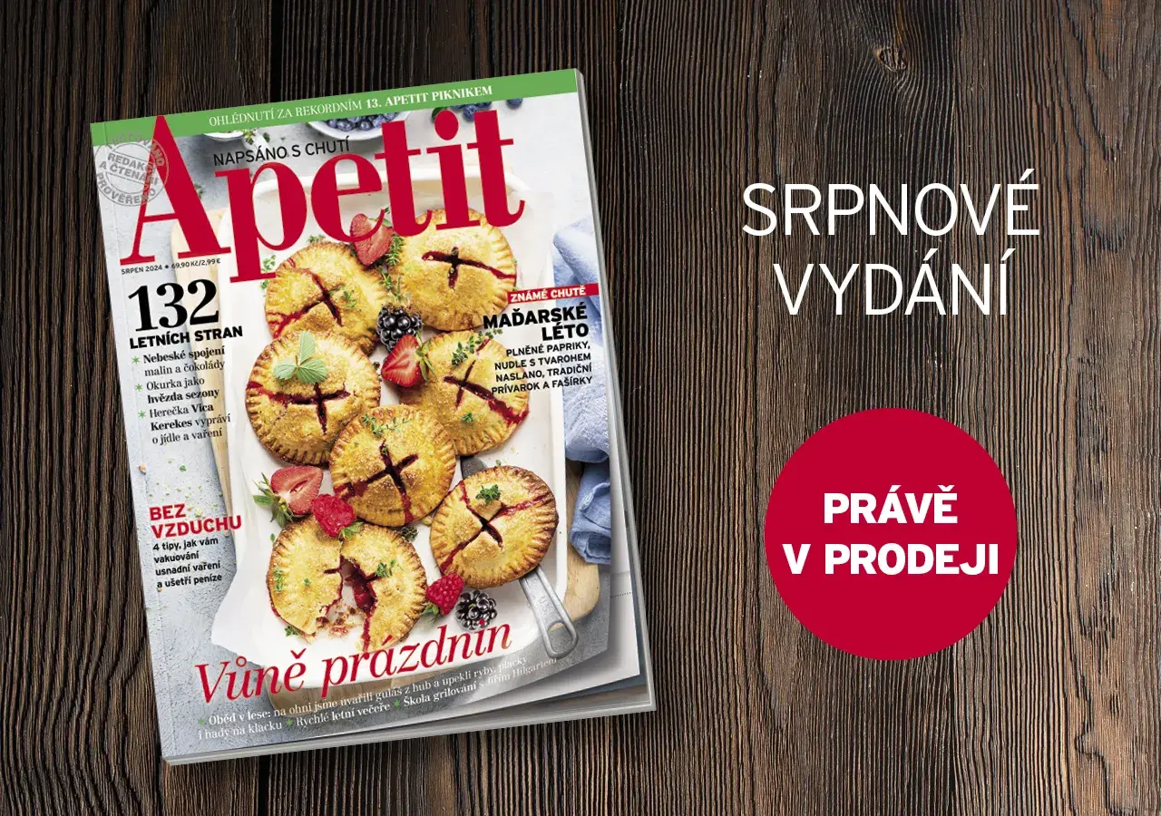Jak si nejlíp vychutnat léto? S Apetitem přeci! Srpnové vydání, které vychází 18. července, je plné té nejchutnější inspirace. Najdete v něm tipy na skvělé recepty z grilu i ohně, pokrmy z čerstvé sezonní zeleniny a ovoce či nápady na cesty za jídlem. Zabaví vás při dlouhé cestě na dovolenou, potěší při lenošení pod slunečníkem, či odmění po dni stráveném prací na zahradě. Lepšího prázdninového parťáka byste hledali jen stěží.