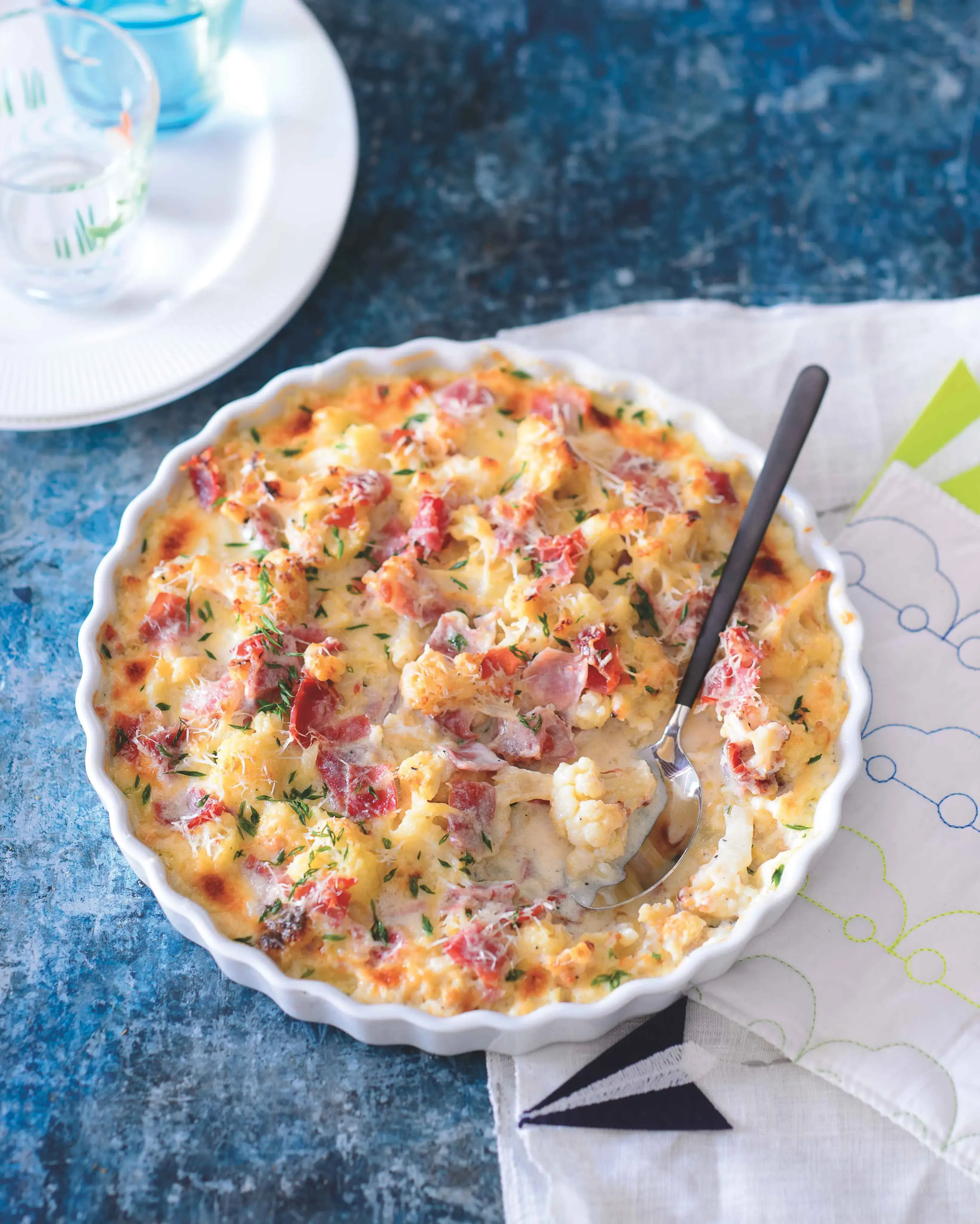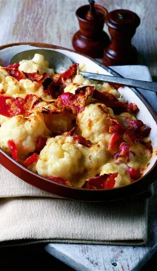 Zapomeňte na rozvařený květák ze školní jídelny. Tady je zapečený, voňavý a tak dobrý, že si dáte přídavek, i když zrovna uvažujete o dietě. Funguje to podobně jako klasické francouzské brambory, ale hlavní roli hraje květák, který je propečený dozlatova se šunkou, sýrem a vajíčkem. Podávejte jej ideálně s velkou lžící zakysané smetany. Nemáte květák? Klidně použijte brokolici. Výsledek bude stejně skvělý.