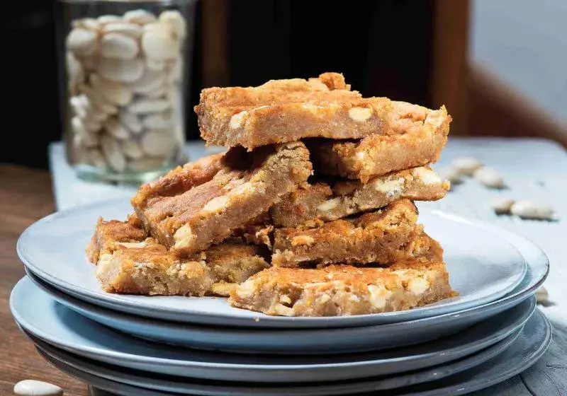 Blonďatá sestra brownies. Až si tyhle sladké řezy upečete, uvěříte nám, že jsou naprostá pecka! Za ,podezřelým‘ složením a nijak oslnivým vzhledem se totiž skrývá spousta chuti a příjemná konzistence.