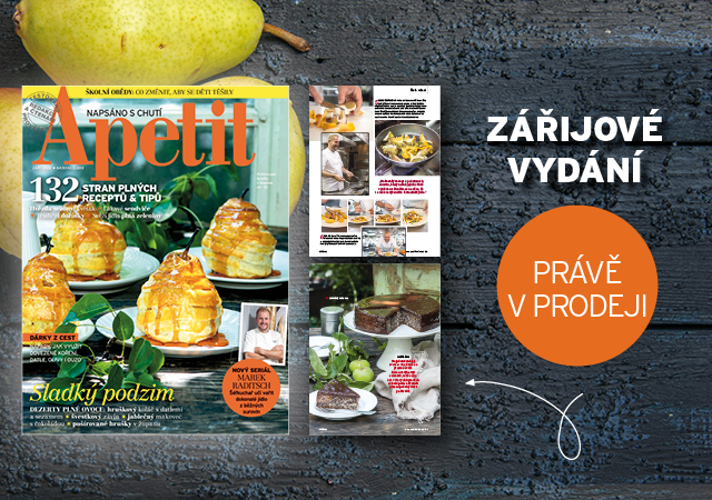Zářijový Apetit je v prodeji od 18. 8. Objednat si ho ovšem můžete až do schránky – poštovné je na nás! Uniknout by vám neměla ani nabídka předplatného – k ročnímu předplatnému Apetitu mužete nyní získat například ochutnávkovou sadu čajů a koření od Sonnentor, jednu z nových kuchařek Apetitu a další zajímavé dárky nebo ho pořídit s úžasnou slevou.