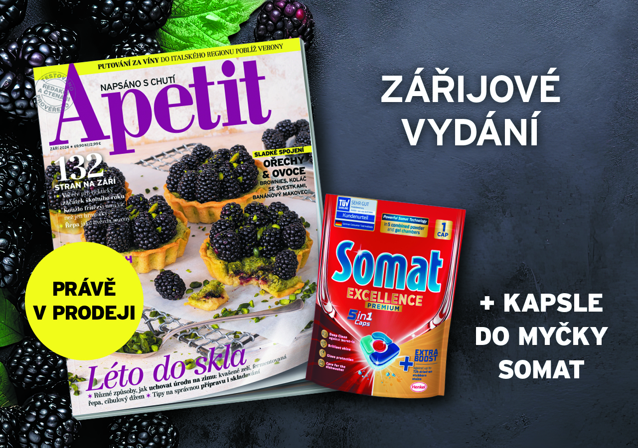 Se zářijovým číslem Apetitu, které vychází 15. 8., si užijete naplno babí léto a začnete se připravovat na nový školní rok. S námi návrat do běžného pracovního a školního režimu zvládnete na jedničku. S odbornicí na výživu Karolínou Fourovou se blíže podíváme na dětské svačiny, připravíme si rychlá jídla v horkovzdušné fritéze a dáme druhý život zbytkům příloh a proměníme je v lahodná jídla.