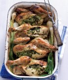Jarní kuřátka plněná malinami vám možná budou znít podivně. Dejte jim šanci. Ovoce spolu s sherry a tymiánem vytvoří příjemně pikantní omáčku. S křupavou bagetou a jednoduchým listovým salátem skvělá volba pro pozdní sobotní oběd.
