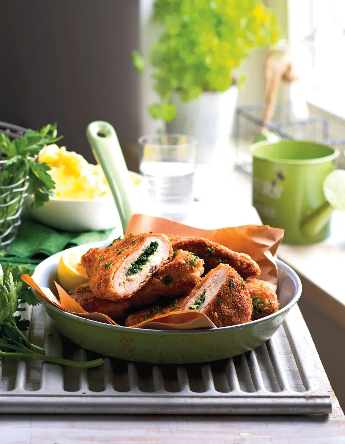 Bez kudrnky se neobejde česká klasika ani arabský salát tabbouleh, do kterého zužitkujete hned pořádný svazek! Spolu s dipem z grilovaného lilku vás naladí na středozemní notu. - Kyjevský řízek s petrželkovou strouhankou