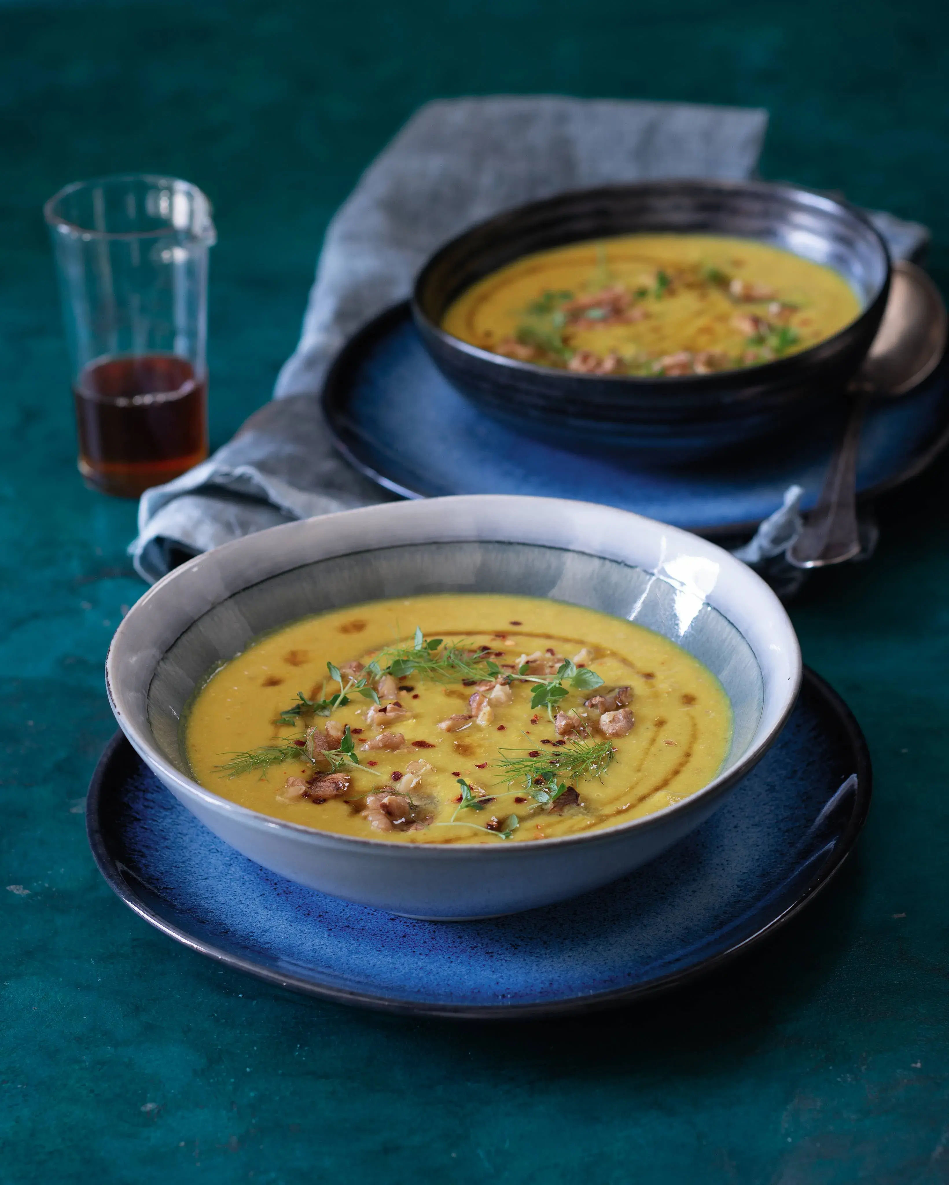 - Ke zjemnění chuti se výborně hodí smetana nebo kokosový krém. Nic nezkazíte ani hrstí čerstvé nasekané natě – petrželová, cibulová, pažitková nebo pohanková nať, řeřicha, bazalka
