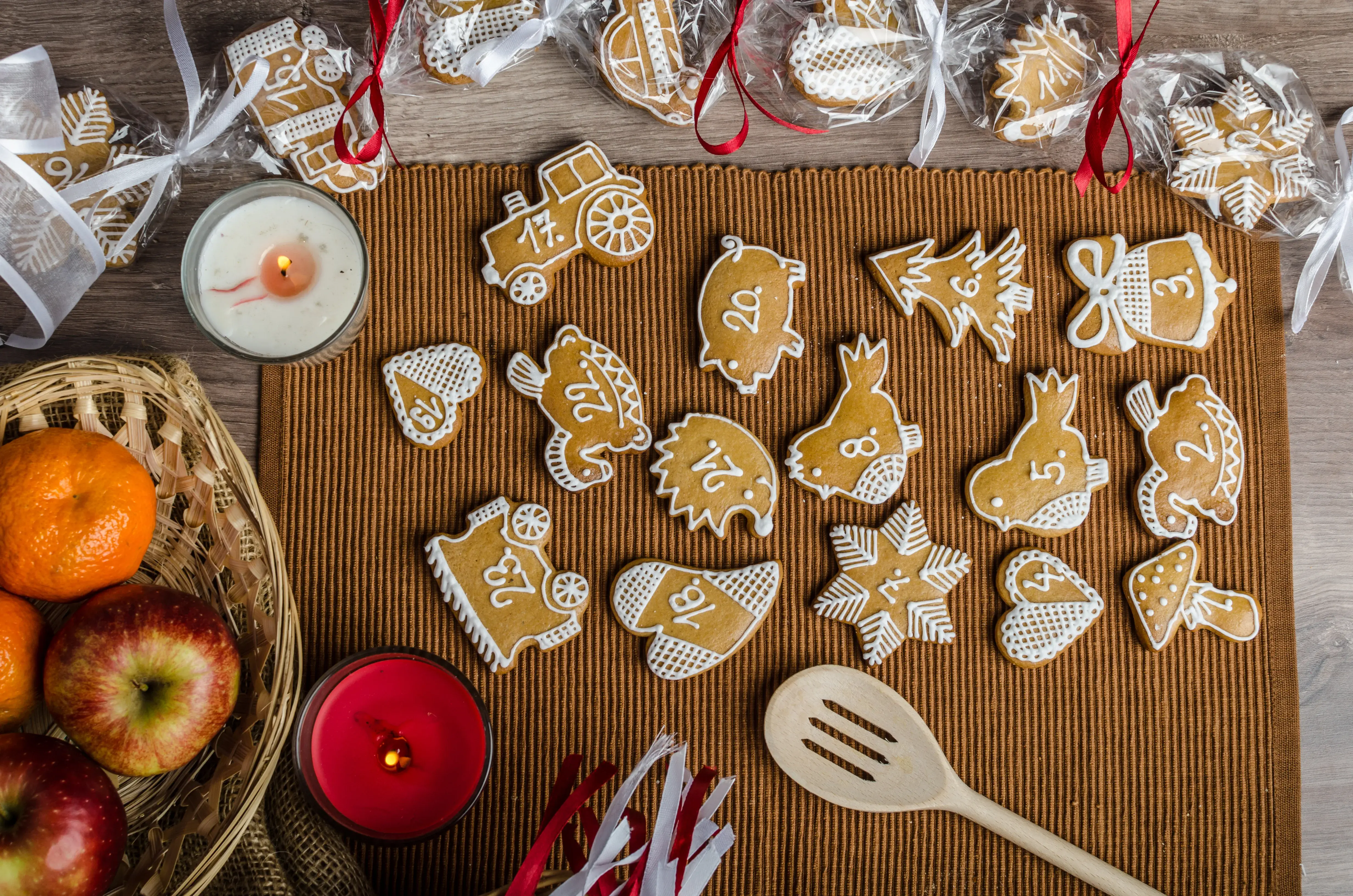 Těsto na perníčky je naprosto geniální hmota, se kterou se dá kouzlit. Perníčky patří mezi tradiční české cukroví a spousta z nás si tyto voňavé kousky věší jako ozdoby i na vánoční stromeček, ale můžete je využít i na adventní kalendář pro děti. Nejjednodušší možností je z těsta vykrojit 24 perníčků – buď stejného tvaru, nebo různé. Do každého za pomoci špejte udělejte dírku a dejte péct. Hotové perníčky ozdobte bílkovou polevou – napište na ně čísla nebo tvary obtáhněte, případně vyplňte celé. Připevněte k nim háček a pověste třeba na smrkové větve ve váze.