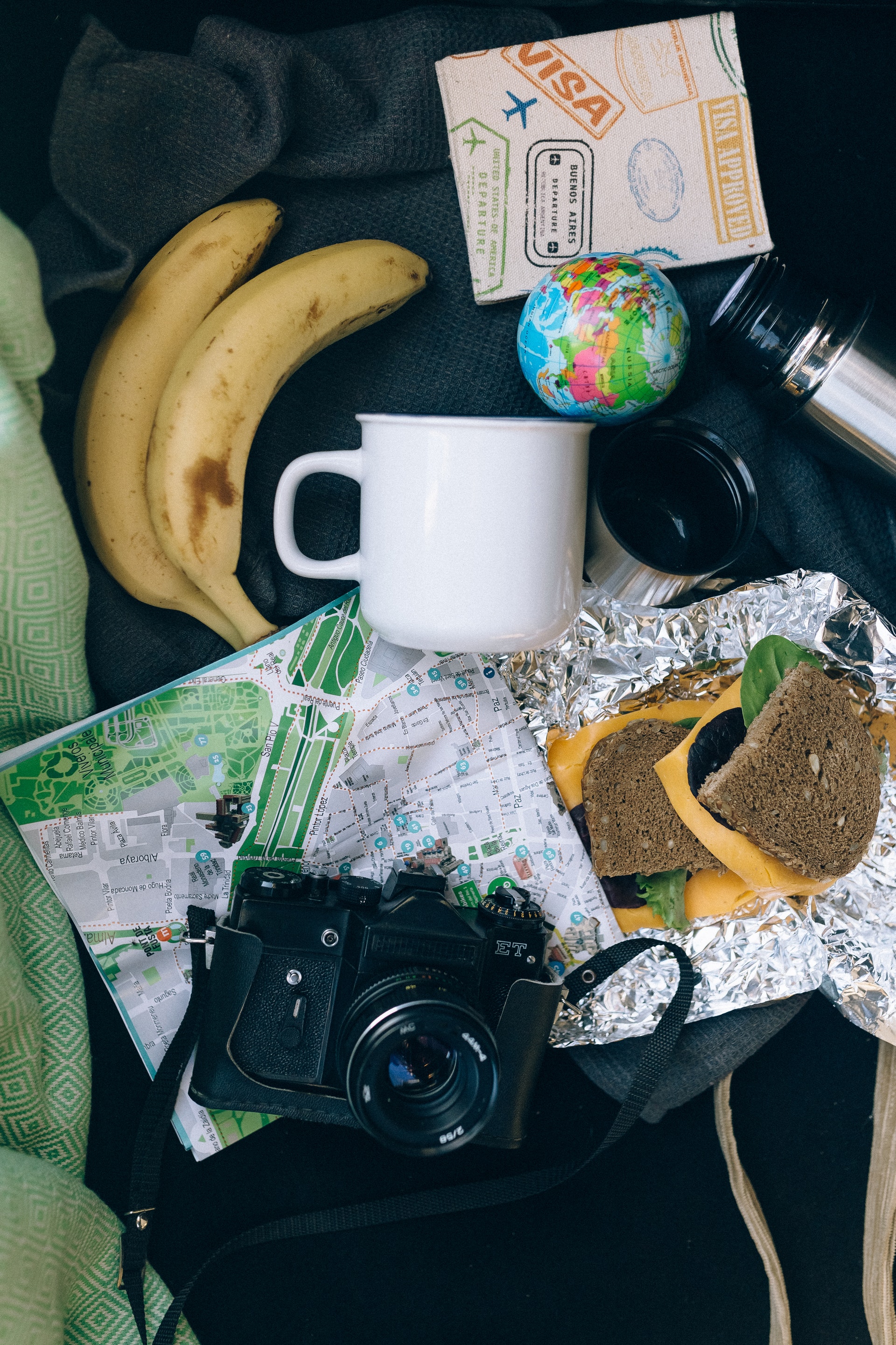 Ideální bageta na cestu je ta, kterou si připravíte sami – hodí se do ní sýr a sušená šunka, případně i sušená rajčata – dresink vynechte. K zahození není ani řízek mezi dvěma chleby. Mlsnou zaženou želatinoví medvídci nebo čokoláda – na cesty je praktičtější ,porcované‘ balení. Přibalte také pitnou vodu a ovocné nápoje nebo omyté ovoce: hroznové víno, hrušky či jablka… Hodit se budou také vlhčené ubrousky, případně prostředek na mytí rukou bez vody.