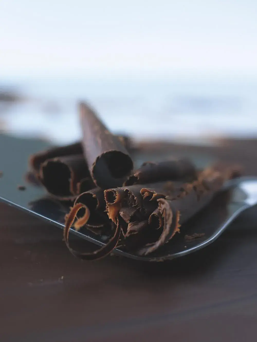 Rozpuštěnou čokoládu nalijte na rovnou, v ideálním případě mramorovou nebo granitovou plochu. Nechte vychladnout, raději však nedávejte do ledničky – povrch čokolády má být tuhý, ale vnitřek by měl zůstat vláčný. Dlouhý nůž s pevnou střenkou držte oběma rukama ostřím od sebe v úhlu 45 stupňů a delším táhlým pohybem odlupujte ruličky.