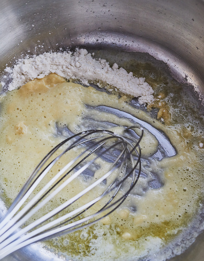 - Světlou jíšku připravíte tak, že do zahřátého másla nasypete rovnoměrně hladkou mouku a na mírném plamenu ji necháte zpěnit.