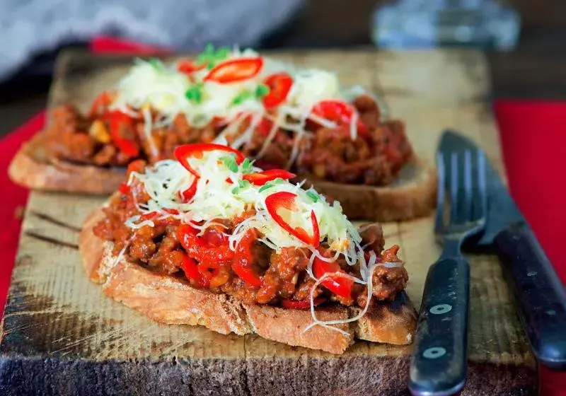 Příprava topinek je jednoduchá a pokrm můžete přizpůsobit svým chuťovým preferencím. Chléb nakrájejte na plátky o tloušťce přibližně jednoho centimetru.
